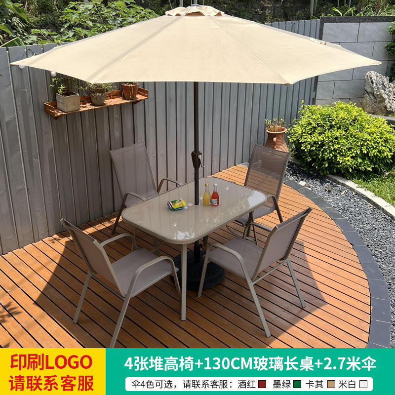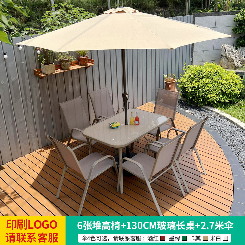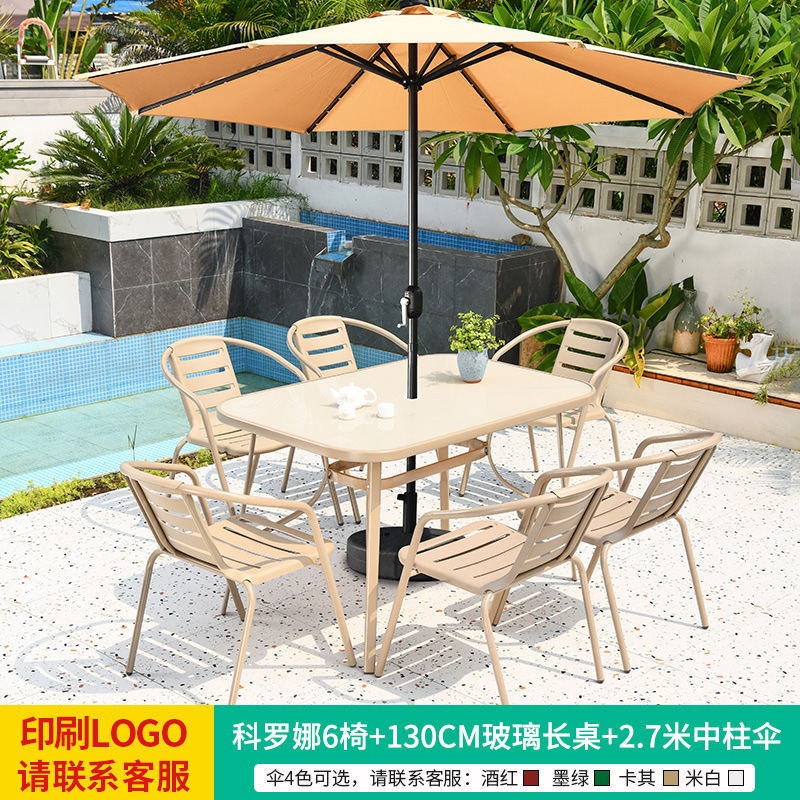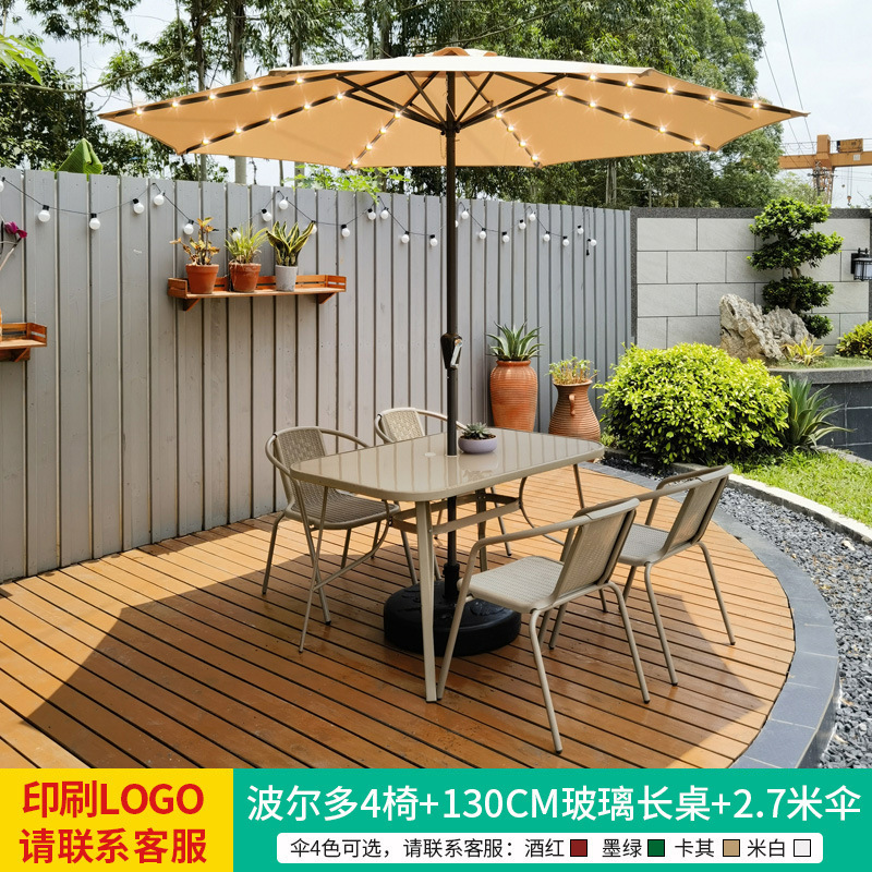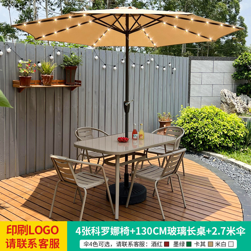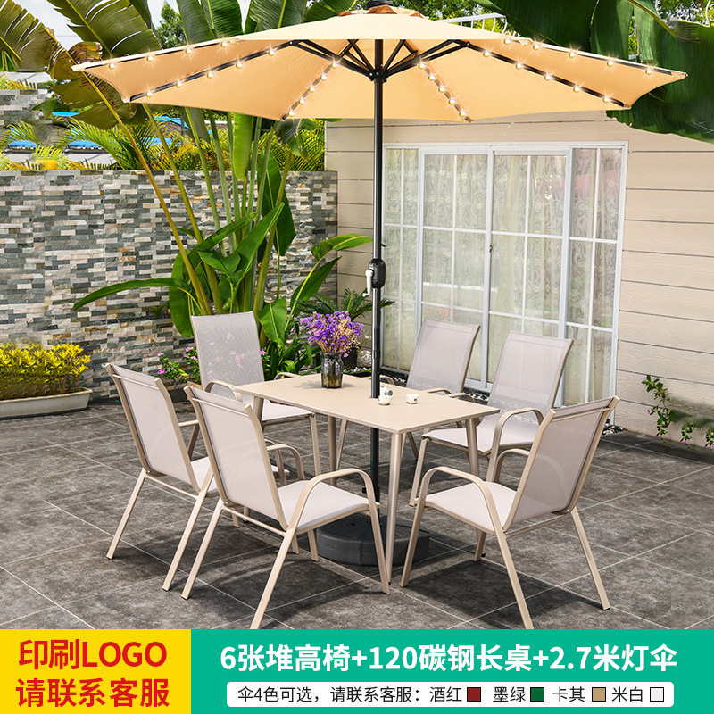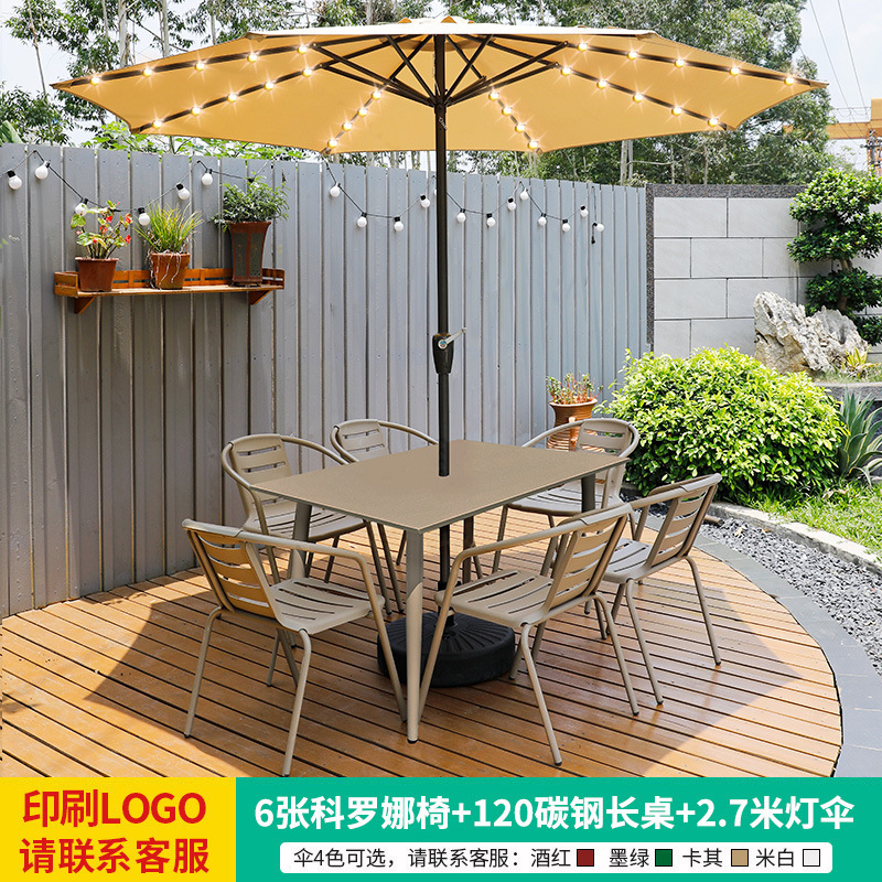 • 테이블, 의자, 램프, 우산 조합 [높이 6개의 의자 + 120CM 탄소강 긴 테이블] [럭셔리 모델 4]