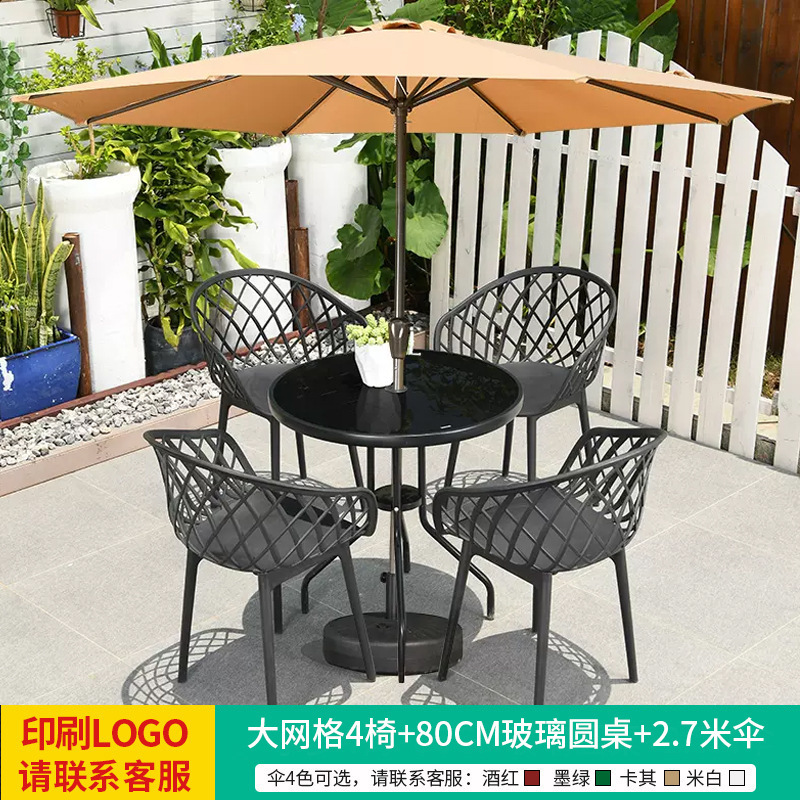 • 테이블, 의자, 램프, 우산 조합 [대형 그리드 4개 + 80CM 유리 원형 테이블] [패키지 22]