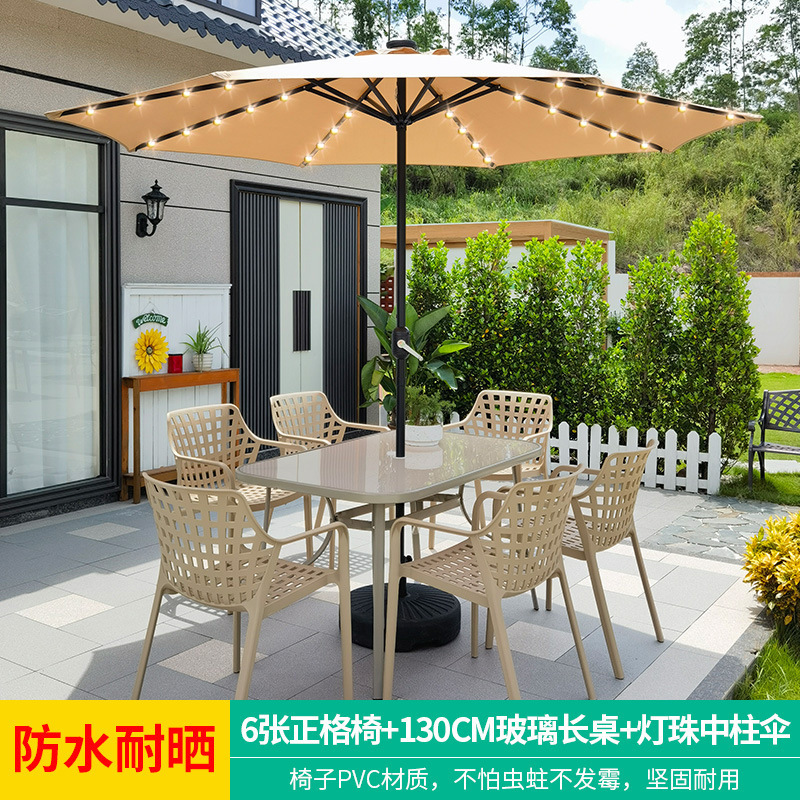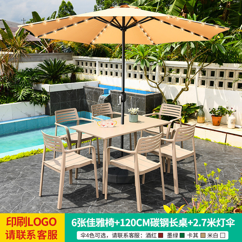 • 테이블, 의자, 램프, 우산 조합 [지아야 6인용 의자 + 120CM 탄소강 롱 테이블] [럭셔리 모델 2]