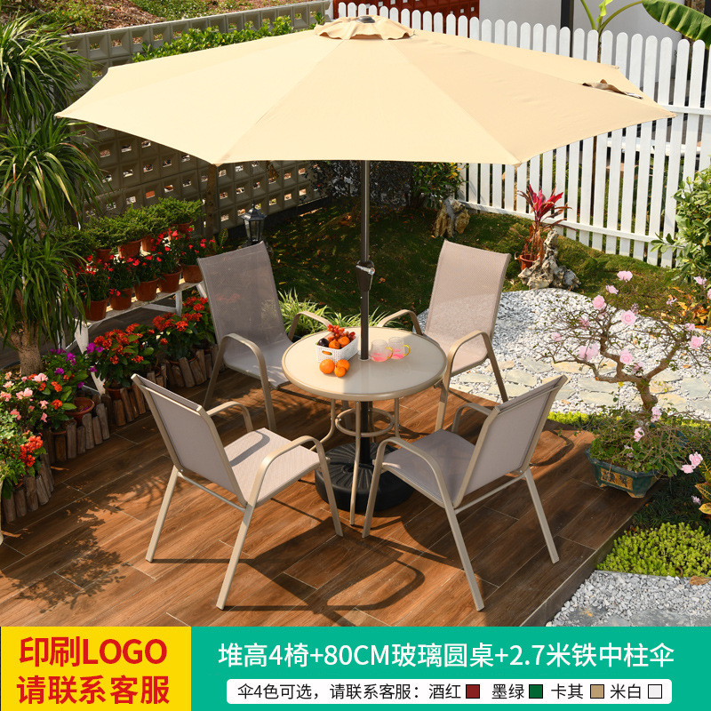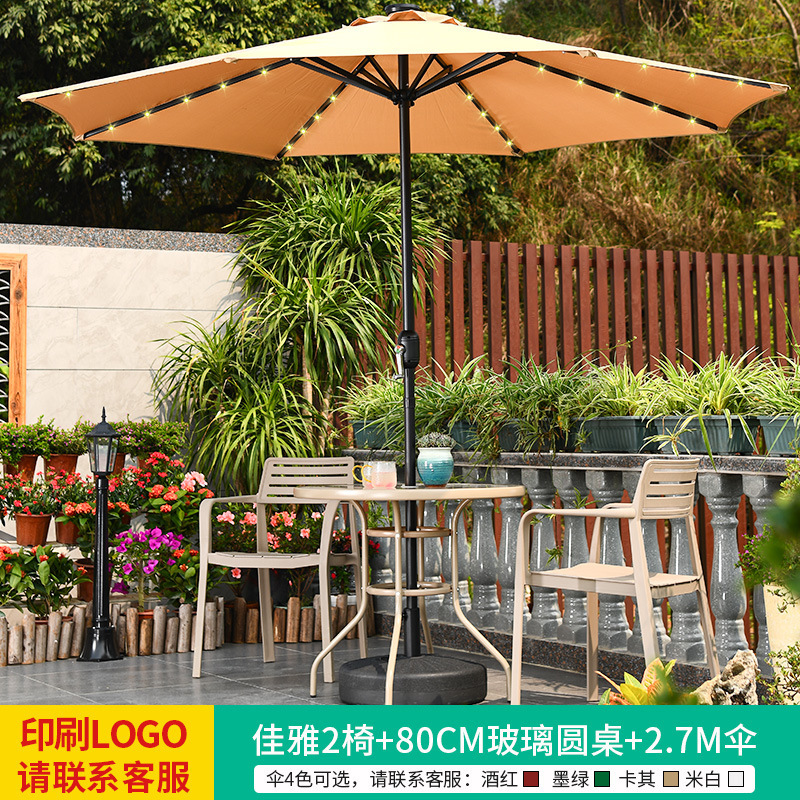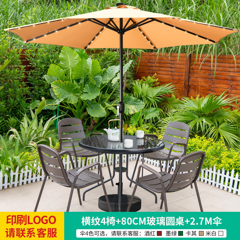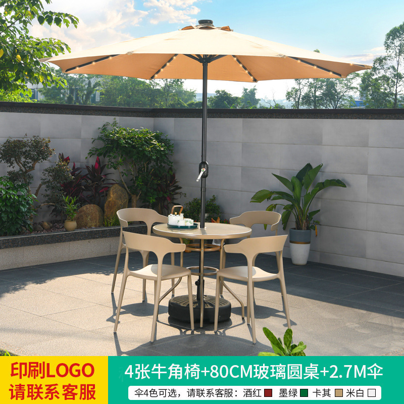 • 테이블, 의자, 램프, 우산 조합 [높이 4개 + 70CM 탄소강 원형 테이블] [럭셔리 모델 3]