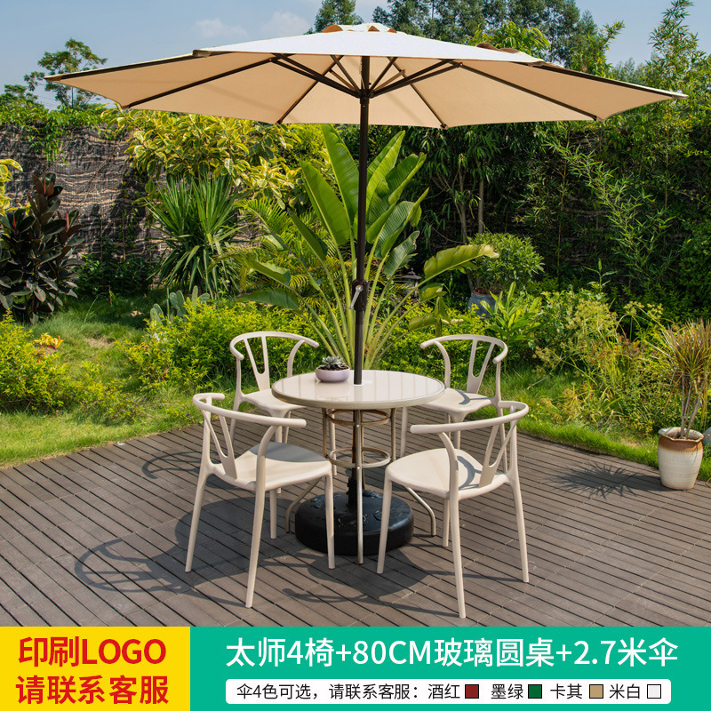 • 테이블, 의자, 램프, 우산 조합 [혼 4개 + 80CM 유리 원형 테이블] [패키지 3]