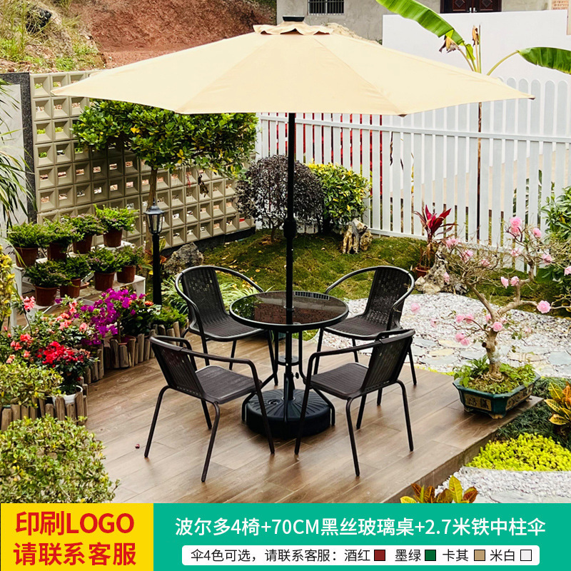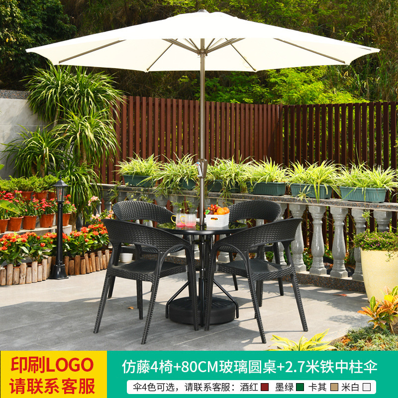 • 테이블, 의자, 램프, 우산 조합 [인조 등나무 의자 4개 + 80CM 유리 원형 테이블] [패키지 7]