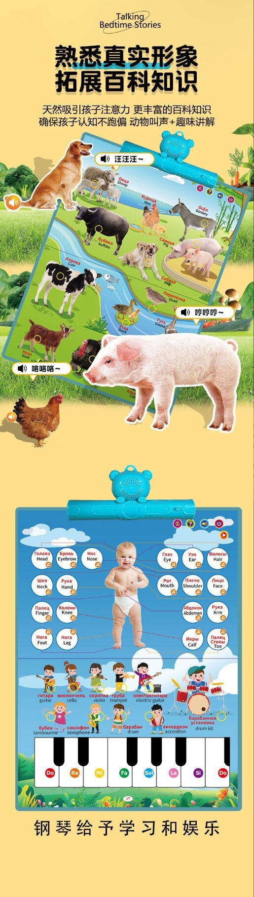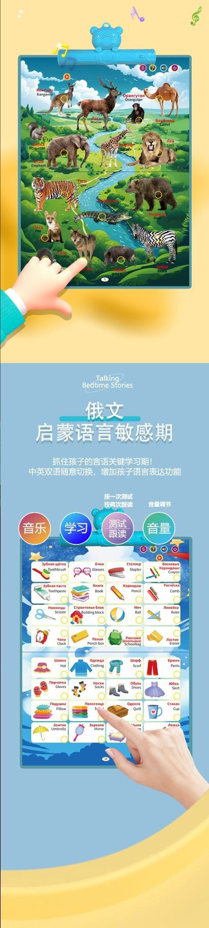 • 【배터리 모델은 배터리 미포함 LLY】0-6세 러시아어-영어 이중 언어 유아 교육 그림책