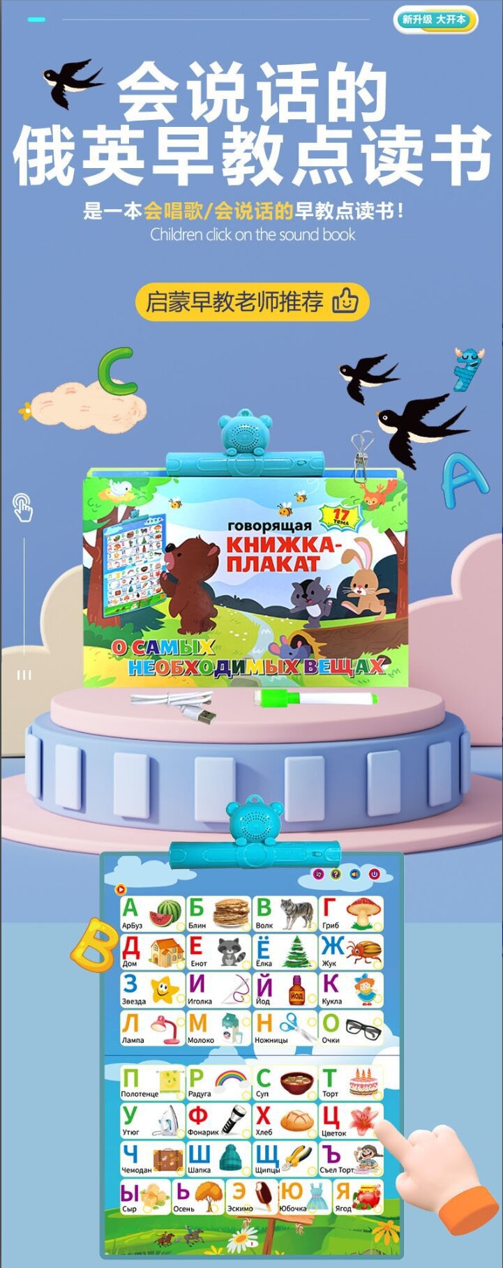 국경 간 러시아어 손가락 읽기 오디오 북 러시아 어린이 스마트 오디오 장난감 러시아어 조기 교육 오디오 그림책