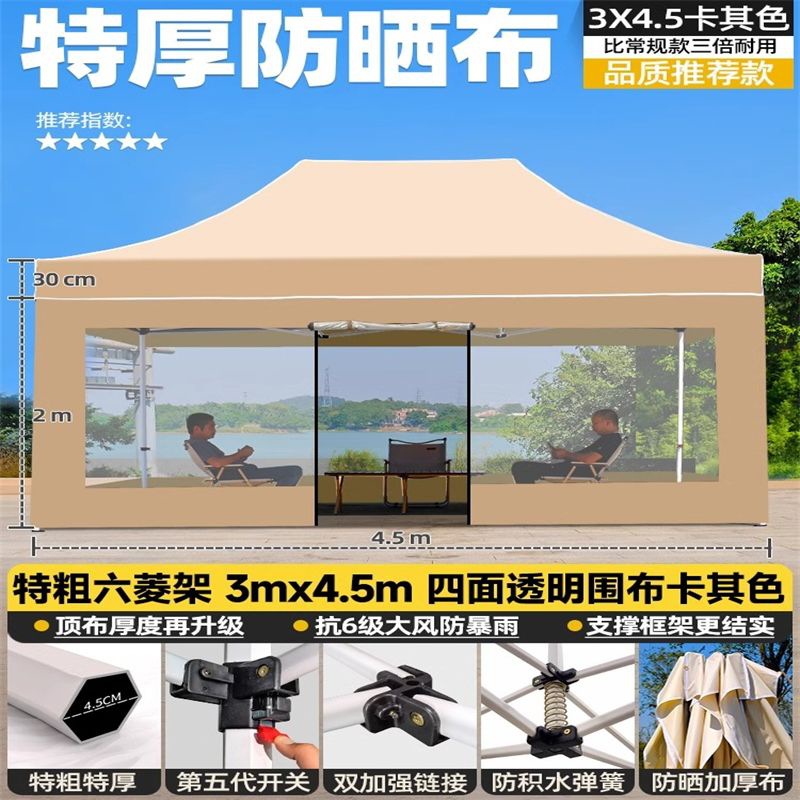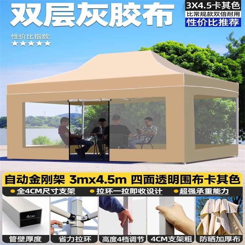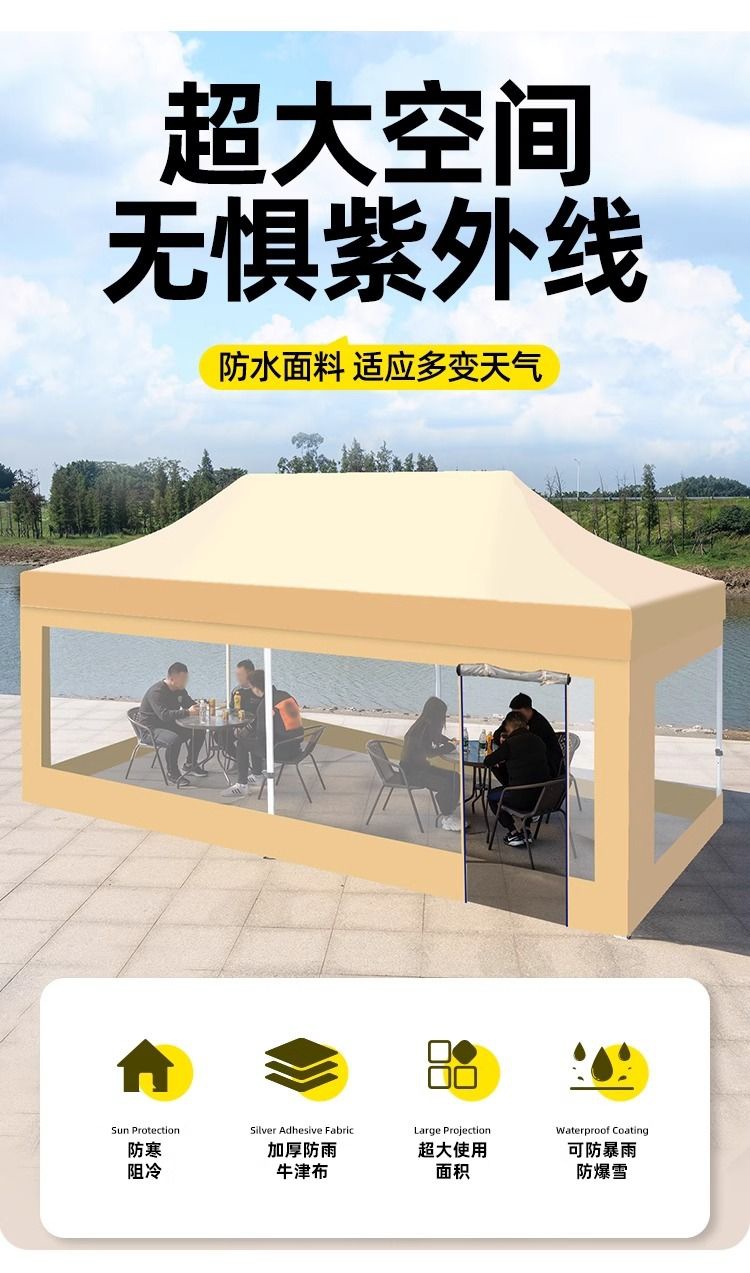 야외 야시장용 텐트, 4개의 다리, 접이식 방수 천막, 4개의 모서리 특수 차양, 대형 우산, 투명 천막, 매점용스토어 가기