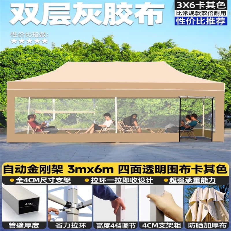 • 두꺼운 킹콩 자동 모델 3*6+4 측면 투명 천 카키색