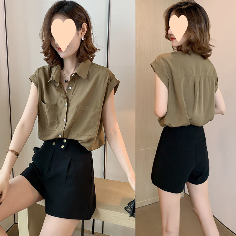 여성용 탑 디자인, 여성용 니치 쉬폰 반팔 셔츠, 여름 신작 패션 한국식 여성용 루즈 슬리밍 셔츠