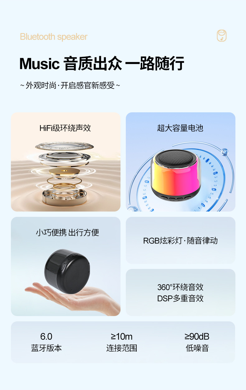 RGB 분위기 야외 방수 6.0 블루투스 스피커 휴대용 무선 ABS 소형 고품질 미니 서브 우퍼