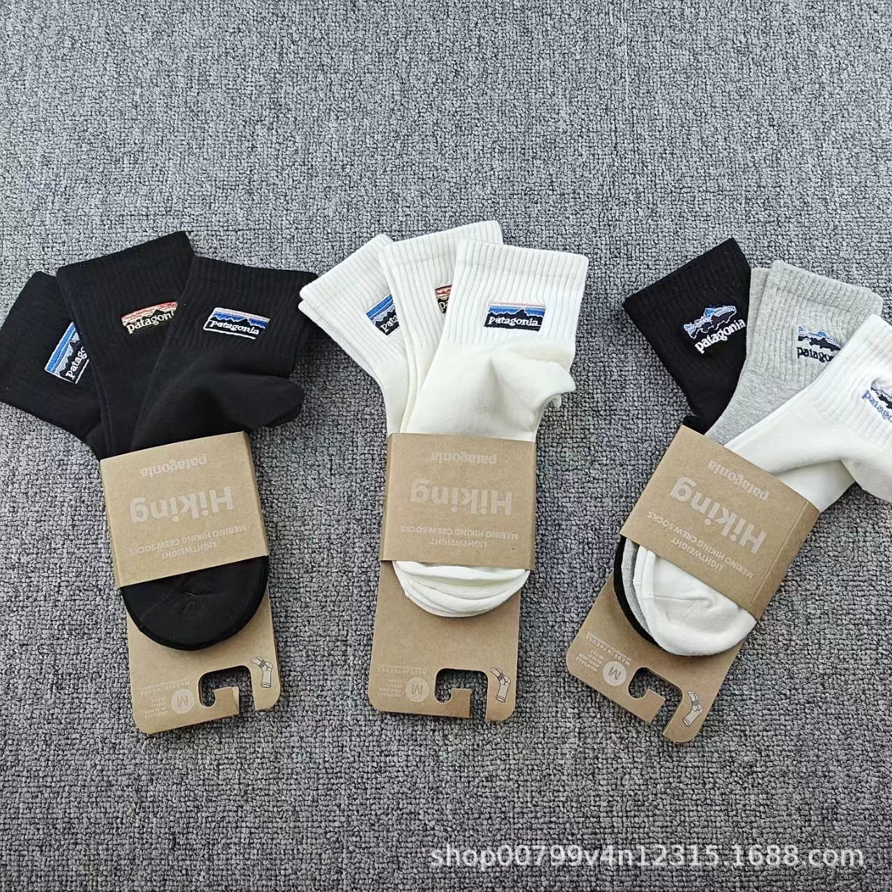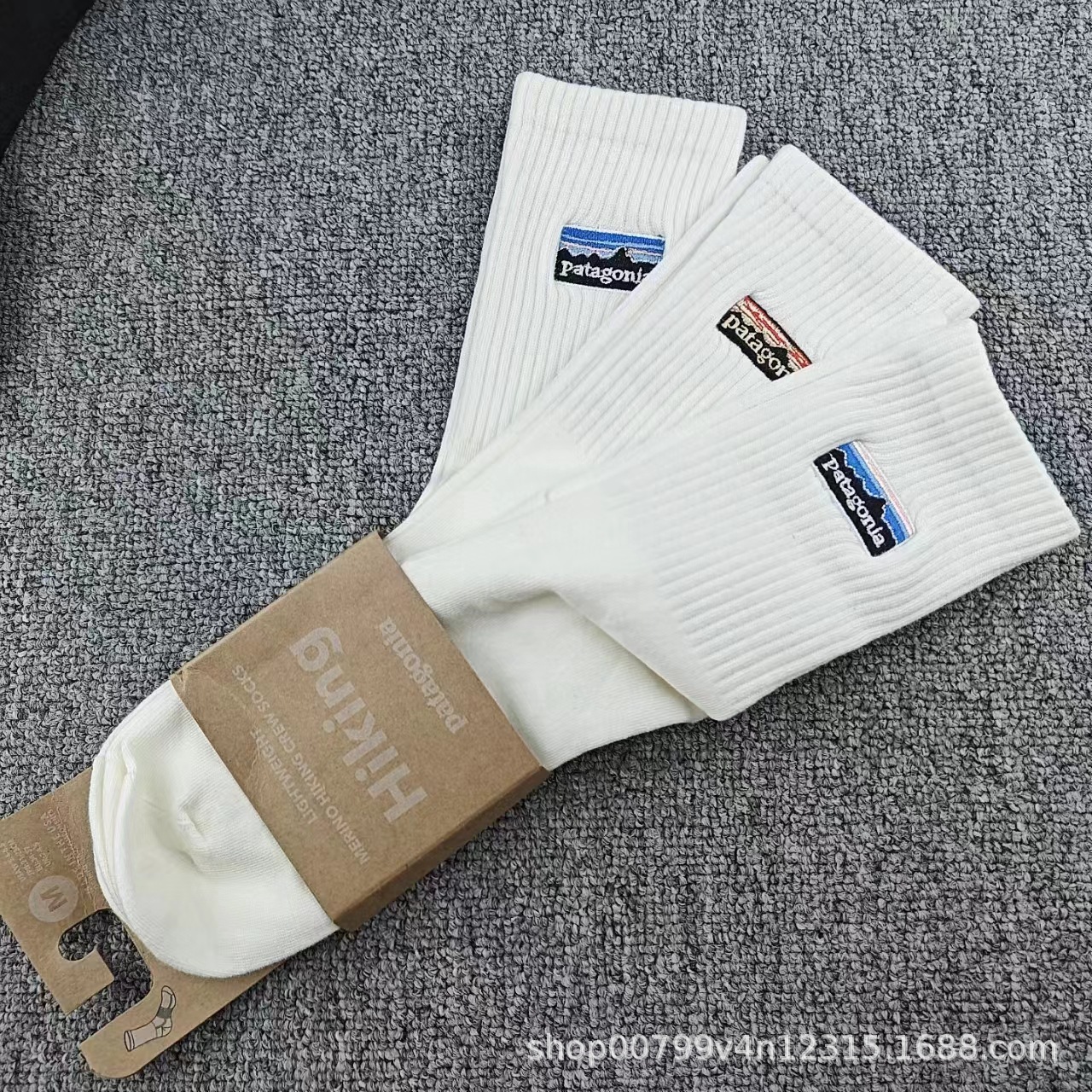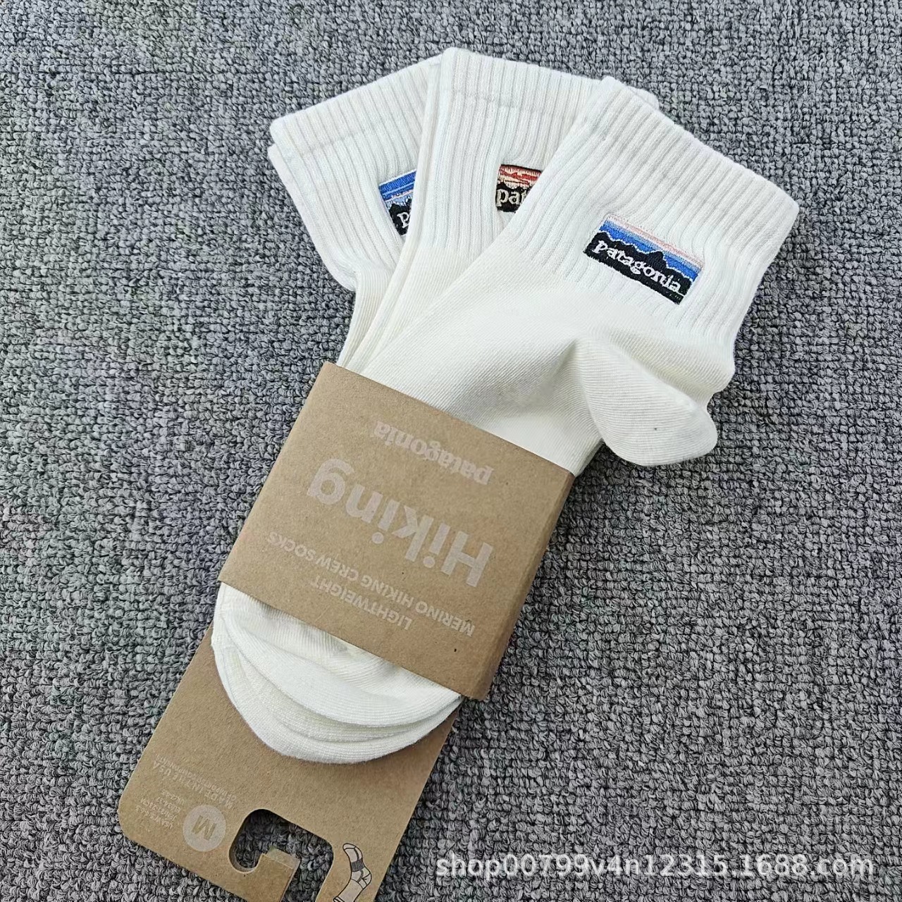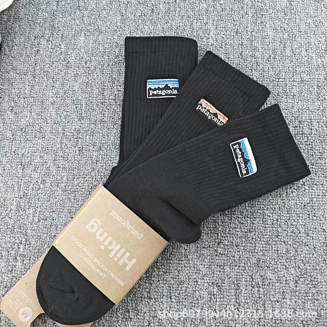 새로운 Patagonia 남성용 및 여성용 야외 레저 스포츠 양말 3켤레, 등산 트렌디 브랜드 종아리 중간 양말 자수스토어 가기
