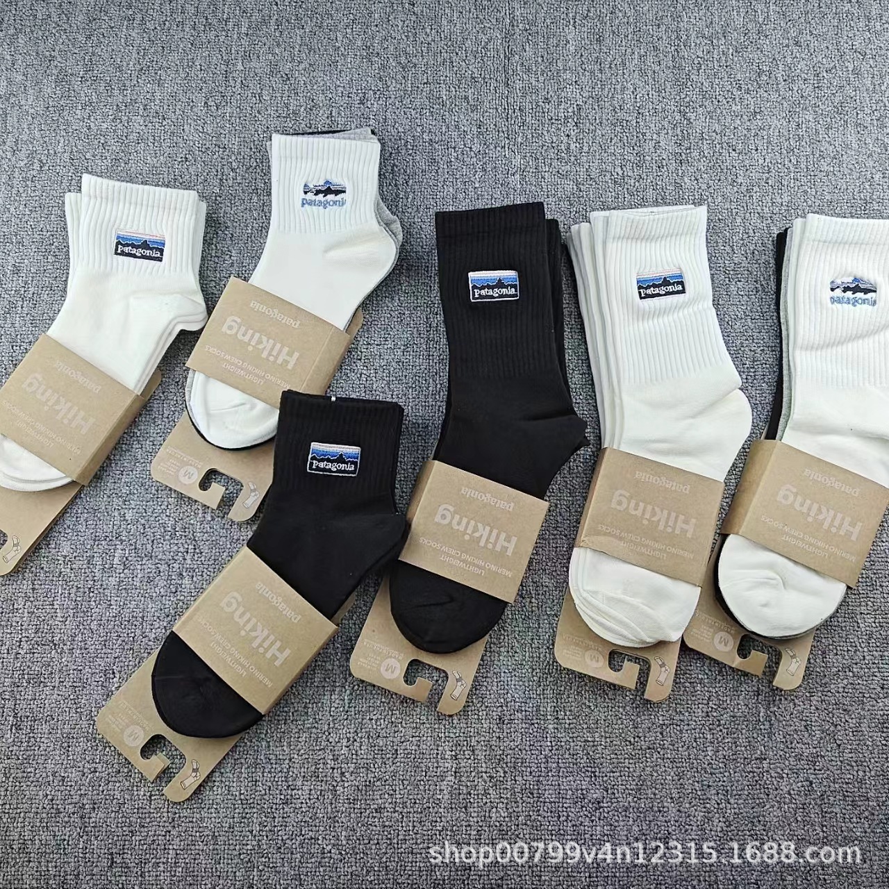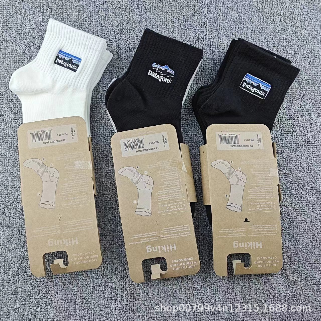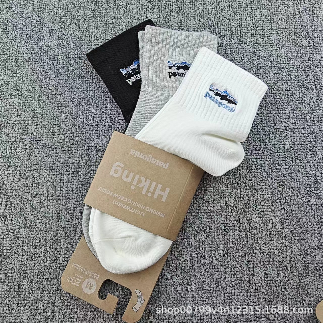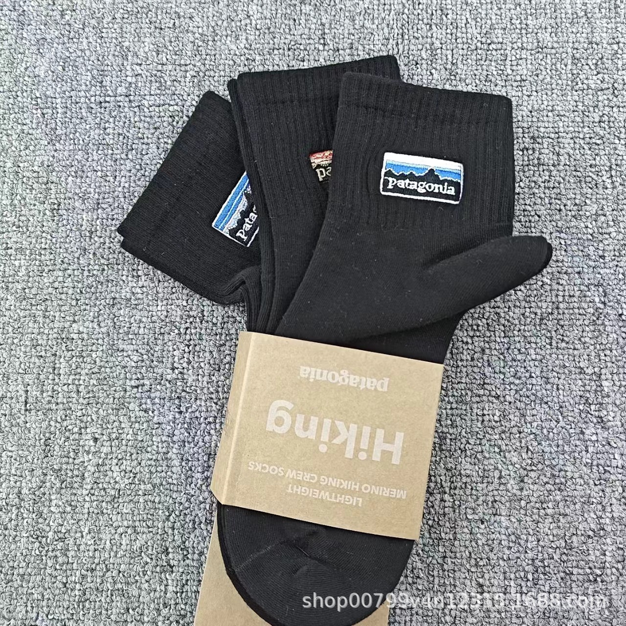 새로운 Patagonia 남성용 및 여성용 야외 레저 스포츠 양말 3켤레, 등산 트렌디 브랜드 종아리 중간 양말 자수스토어 가기