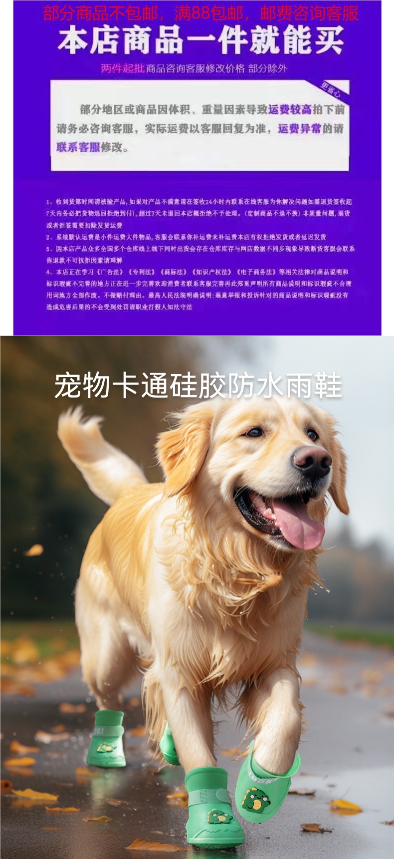 중대형견 레인부츠, 방수 및 낙하방지 애견신발, 애완동물 더러움방지 골든리트리버 코기 발덮개, 여름나들이스토어 가기
