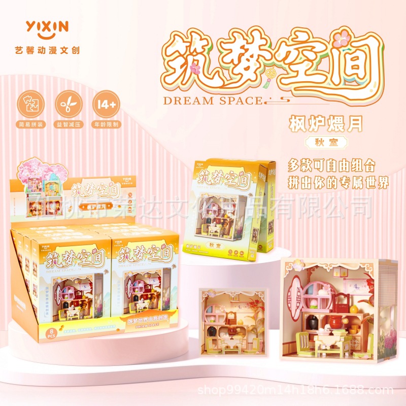Yixin DIY 장면 하우스 드림 스페이스 어린이 미니 미니어처 하우스 3D 조립 조명 건물 장식품스토어 가기