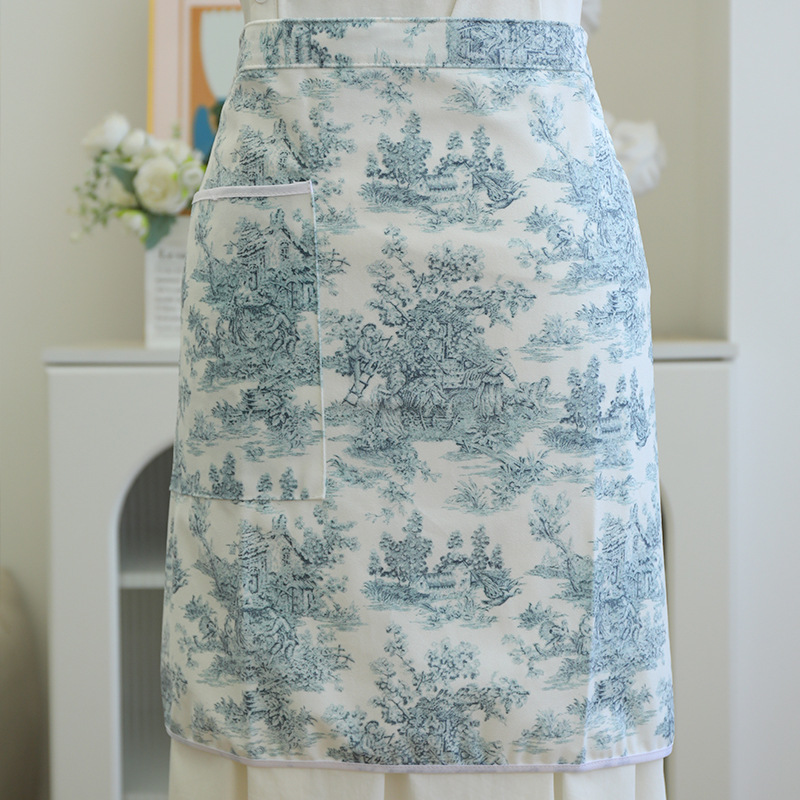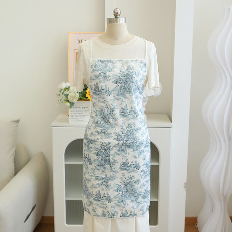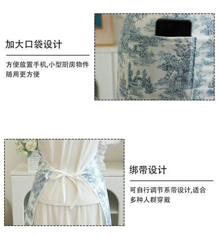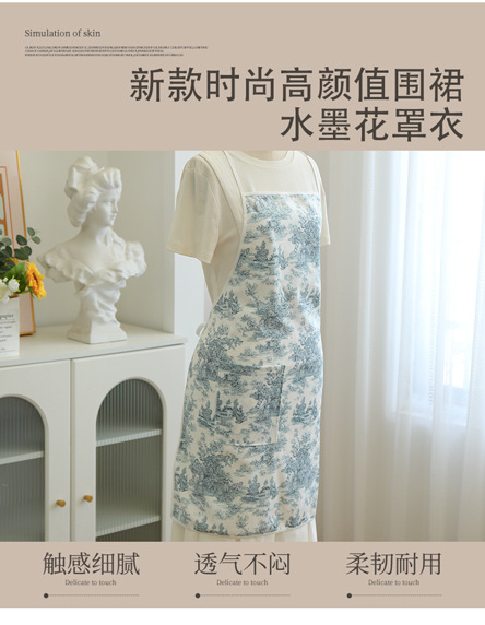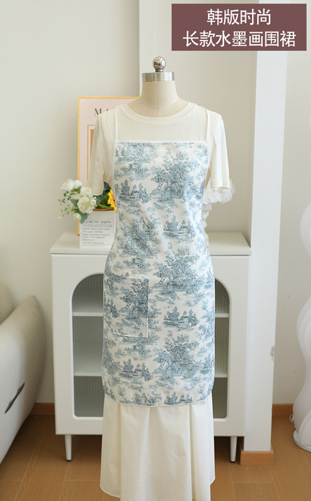 새로운 수묵화 방오 및 내마모성 작업복 파란색 가장자리 앞치마 국경 간 대외 무역 카페 및 레스토랑 특수 앞치마