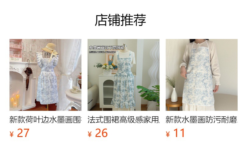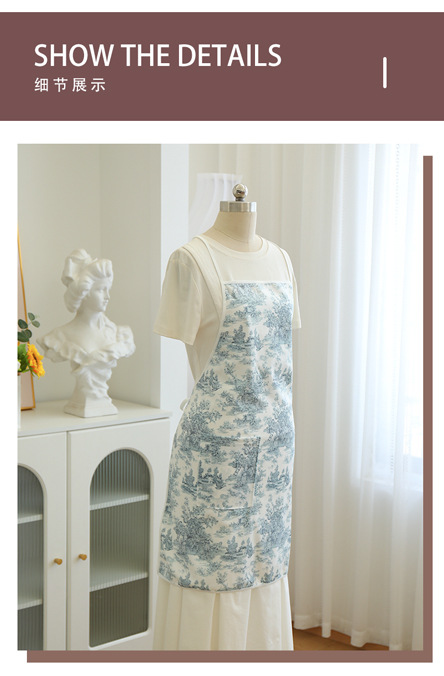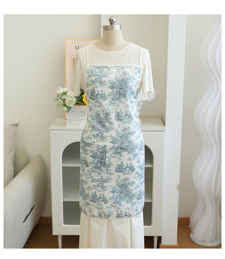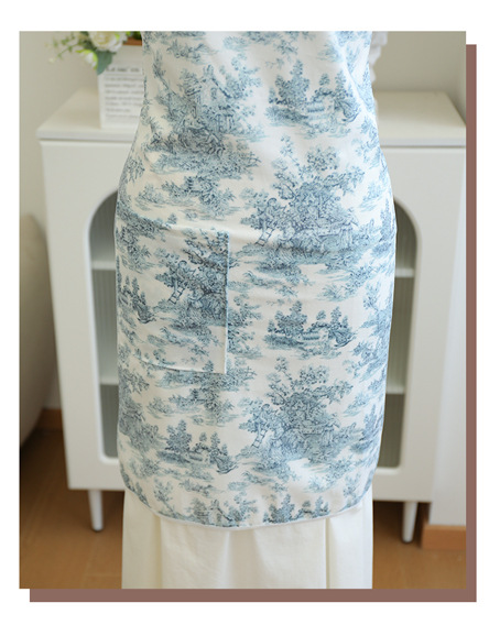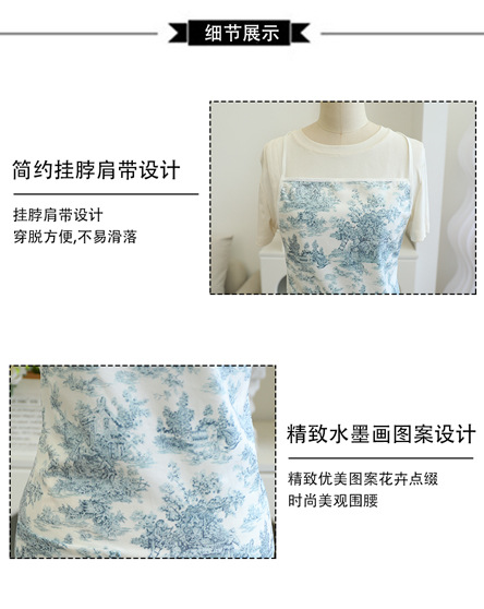 새로운 수묵화 방오 및 내마모성 작업복 파란색 가장자리 앞치마 국경 간 대외 무역 카페 및 레스토랑 특수 앞치마스토어 가기