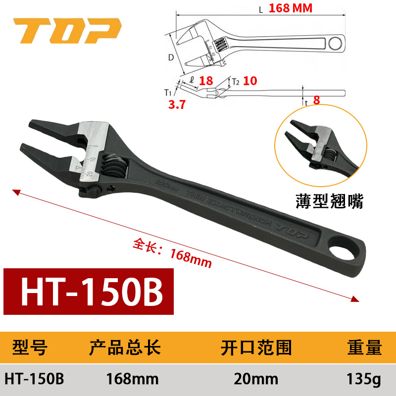 일본 오리지널 TOP 브랜드 슬립 렌치 수입 산업용 등급 얇은 입 다기능 대형 오픈 엔드 파이프 렌치 HM-38스토어 가기