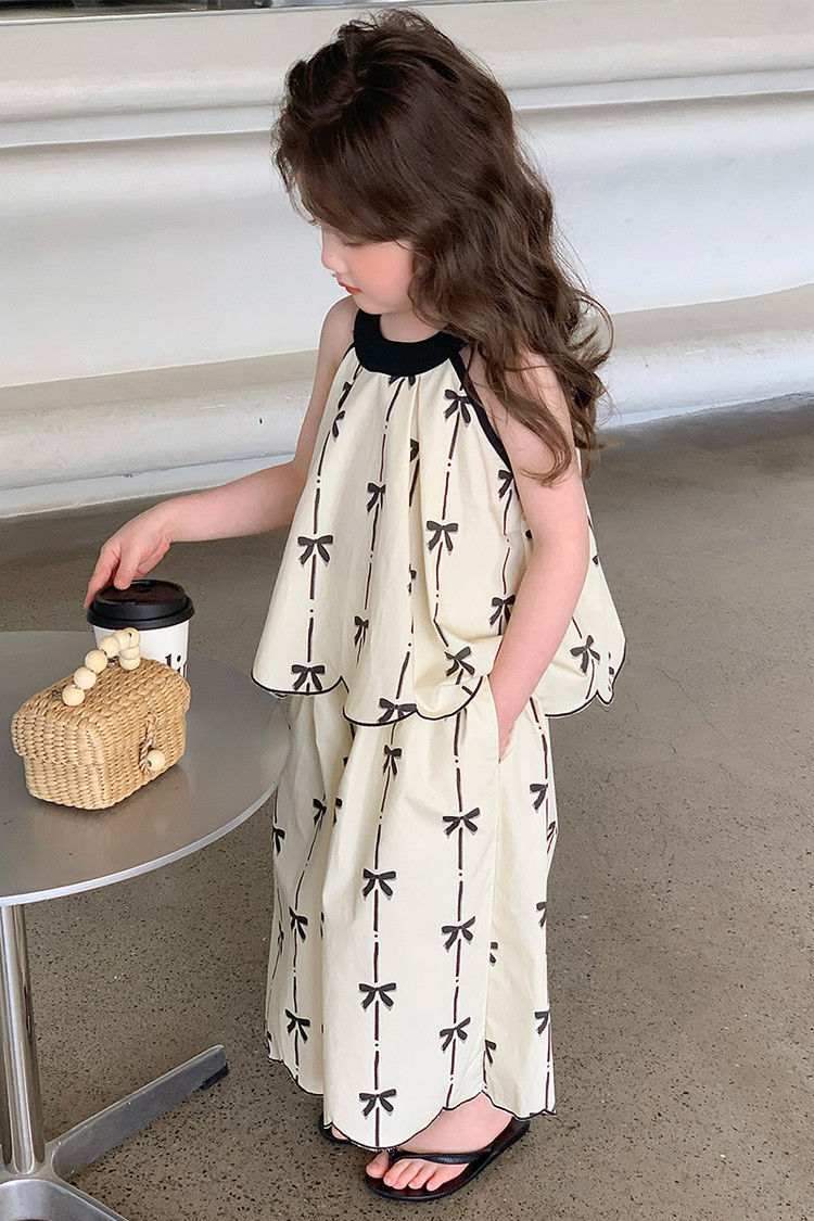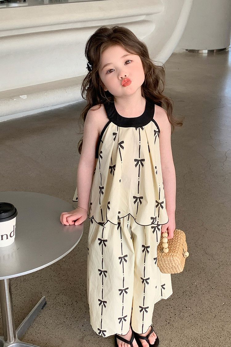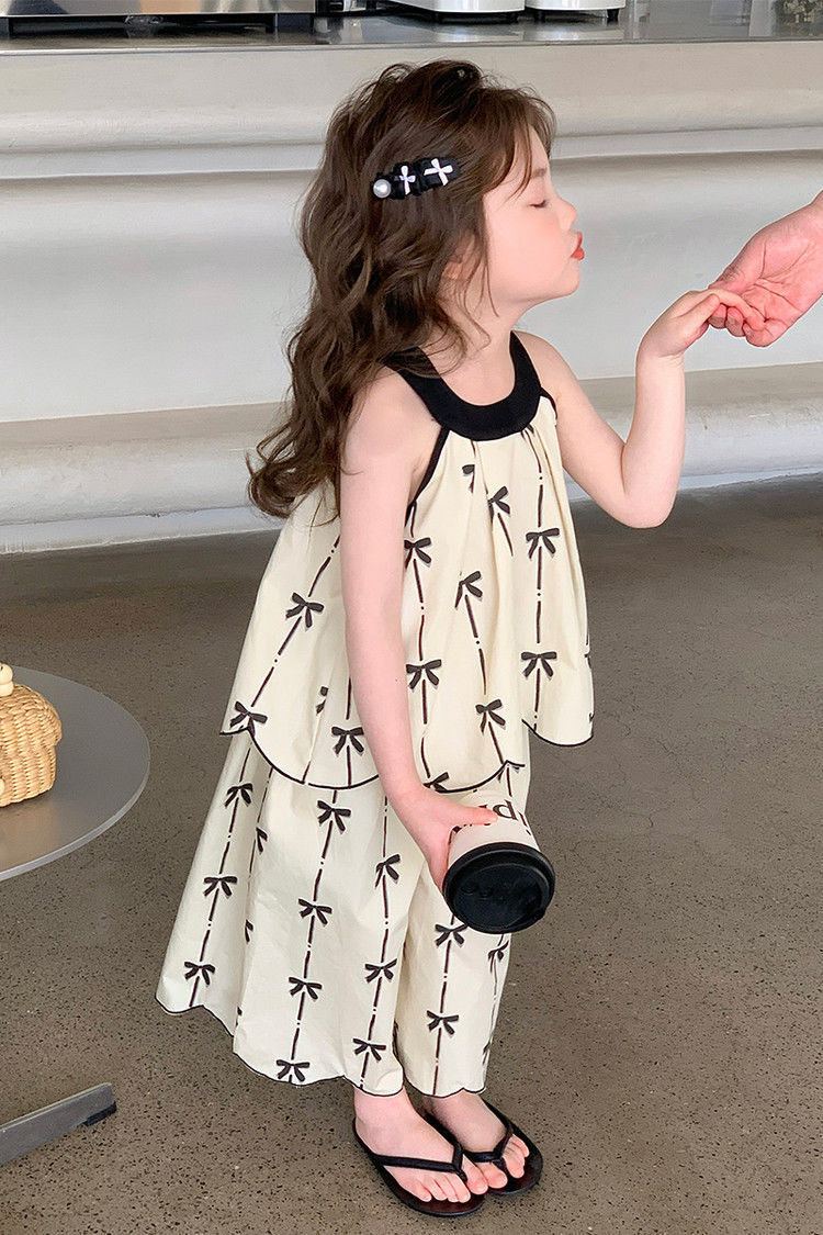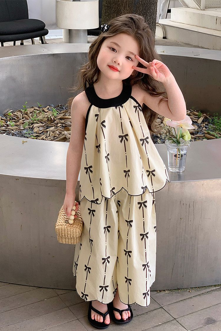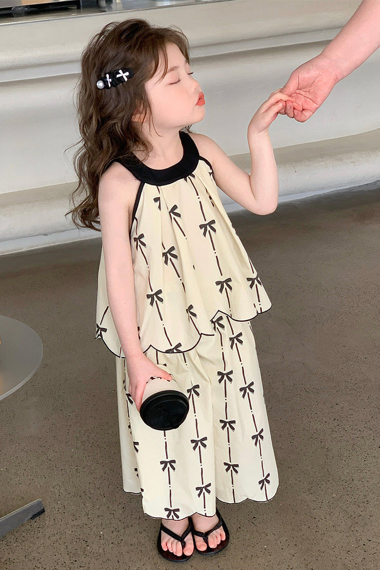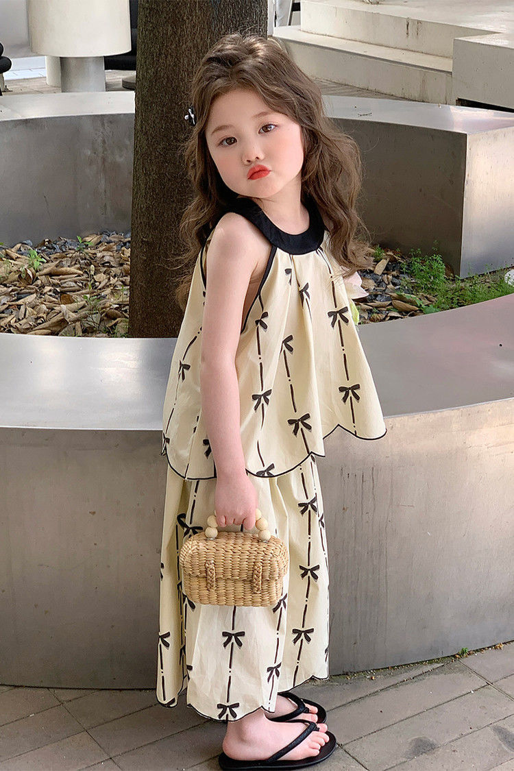 중대형 아동복 2026년 신상 여아 세트, 자수 장식이 있는 다용도의 세련된 인기 니트 투피스 세트