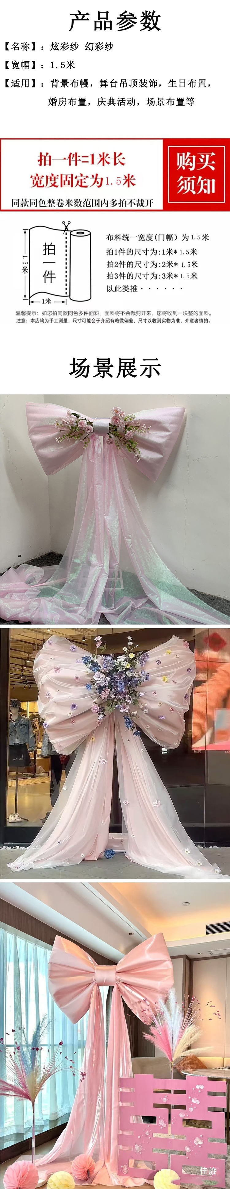 웨딩 보우 핑크 패브릭 다채로운 원사 판타지 원사 진주 빛 오간자 웨딩 세트 밝은 원사 장식 패브릭