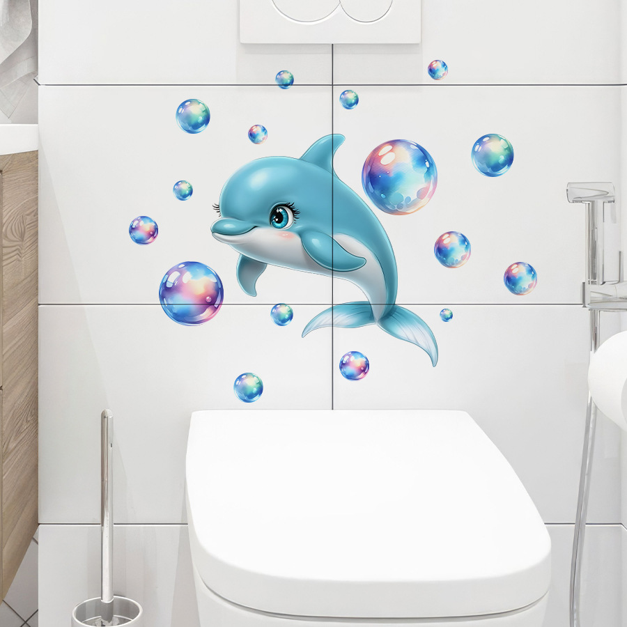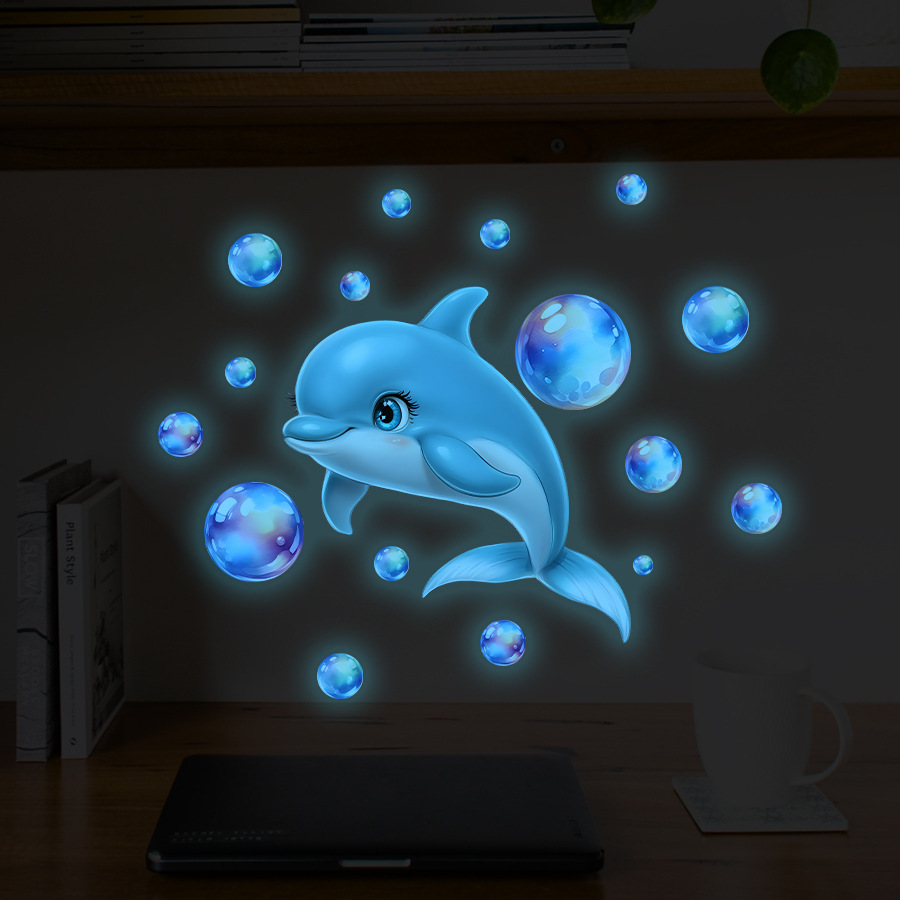 HS-YG049 귀여운 아기 돌고래 버블 블루 빛나는 자체 접착 벽 스티커 어린이 방 욕실 장식 스티커스토어 가기