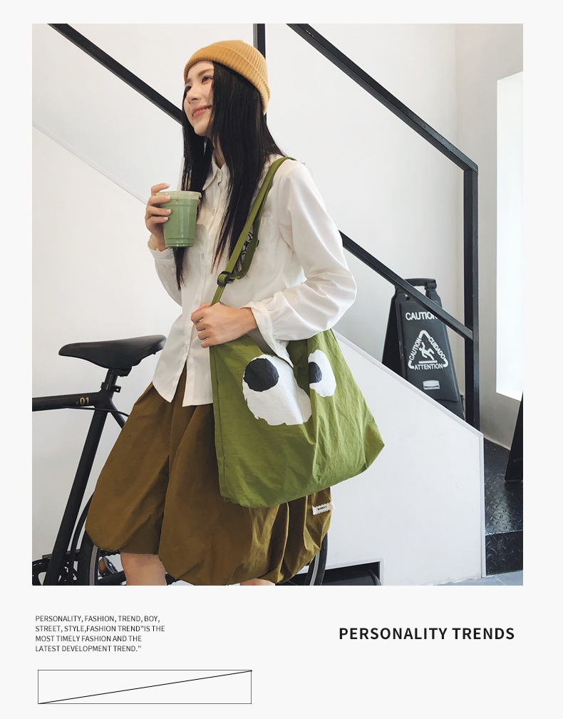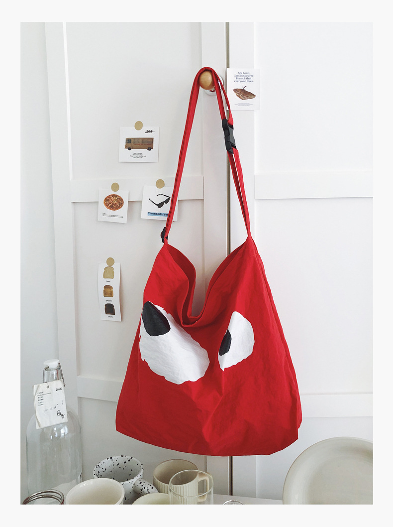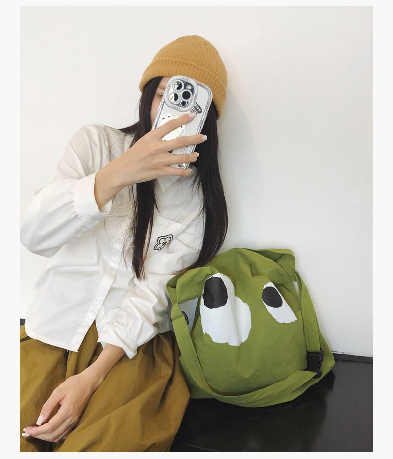 어깨 대용량 가방 2025 여름 새로운 귀엽고 재미있는 만화 새로운 나일론 캔버스 가방 유행 패션 크로스 바디 백스토어 가기