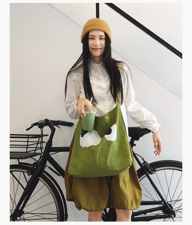 어깨 대용량 가방 2025 여름 새로운 귀엽고 재미있는 만화 새로운 나일론 캔버스 가방 유행 패션 크로스 바디 백