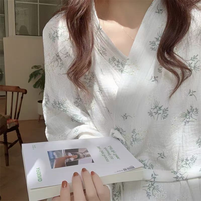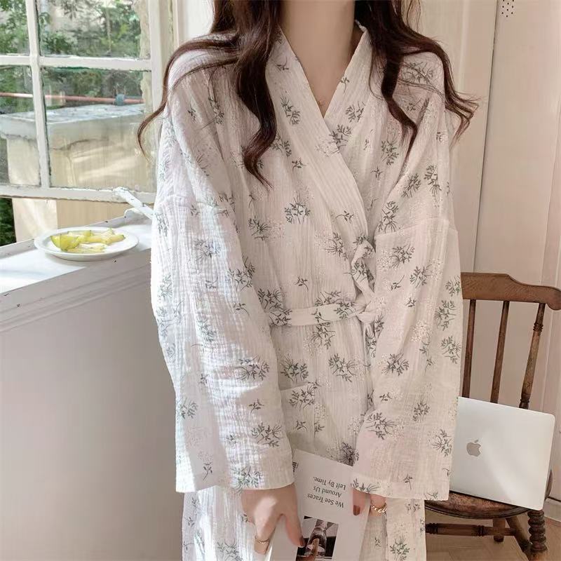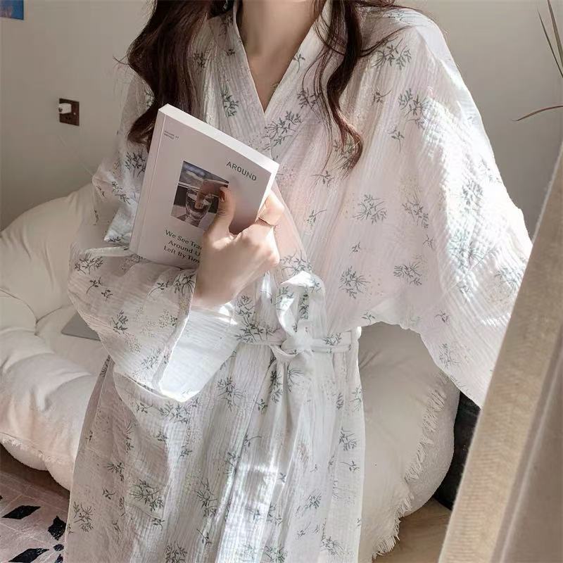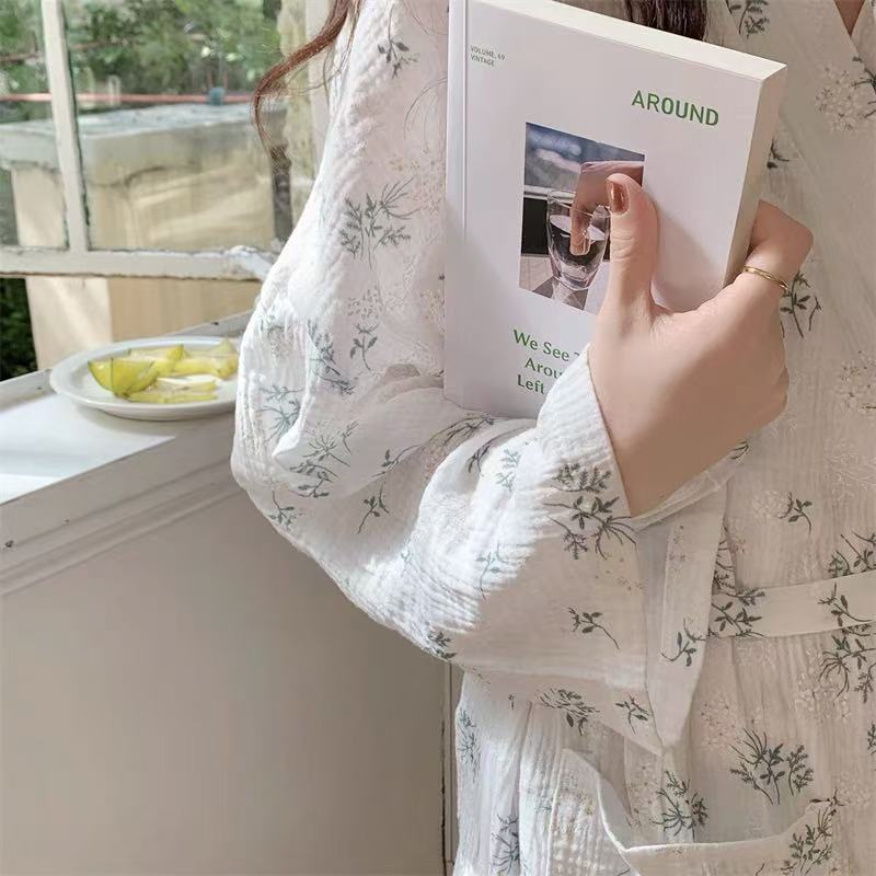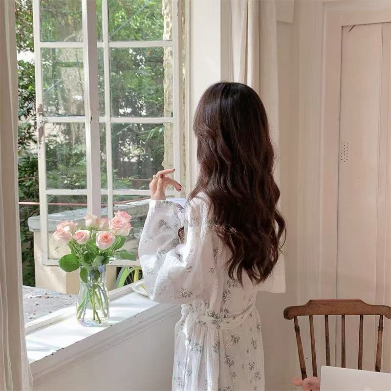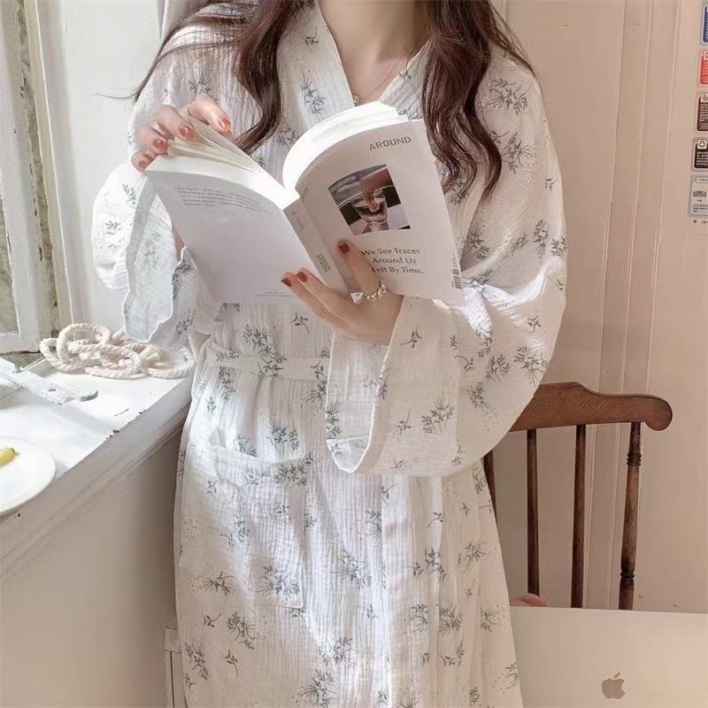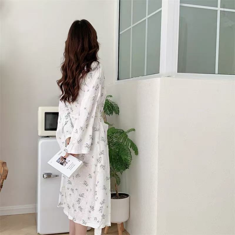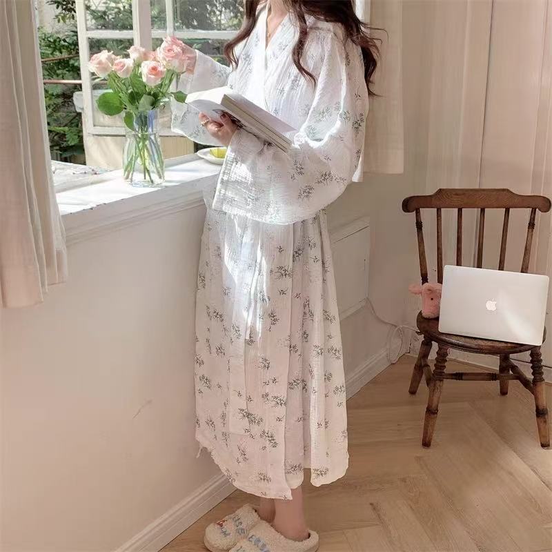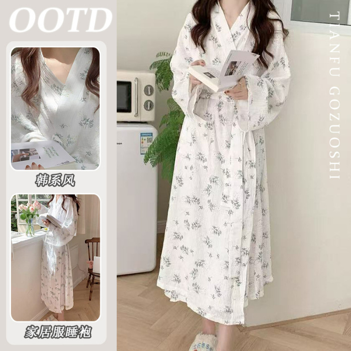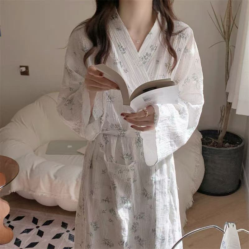한국 여성의 새로운 잠옷 여성 봄, 가을 꽃 목욕 가운 긴 기모노 느슨한 잠옷 여름 가정복스토어 가기