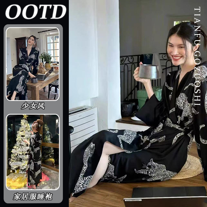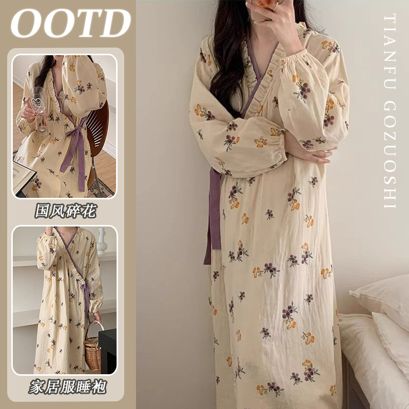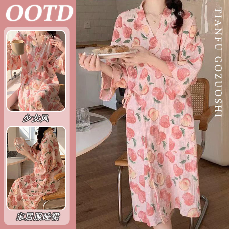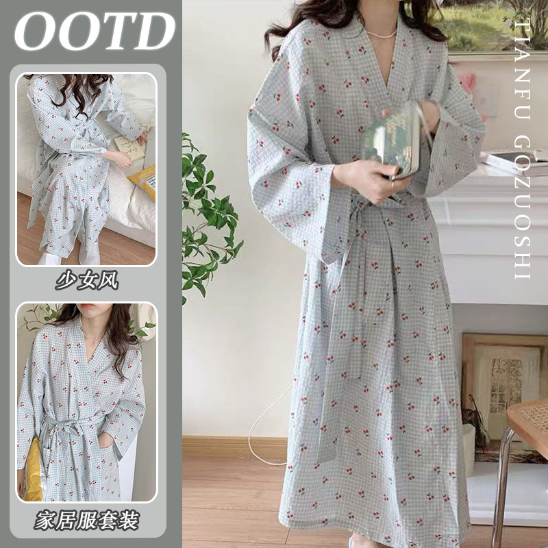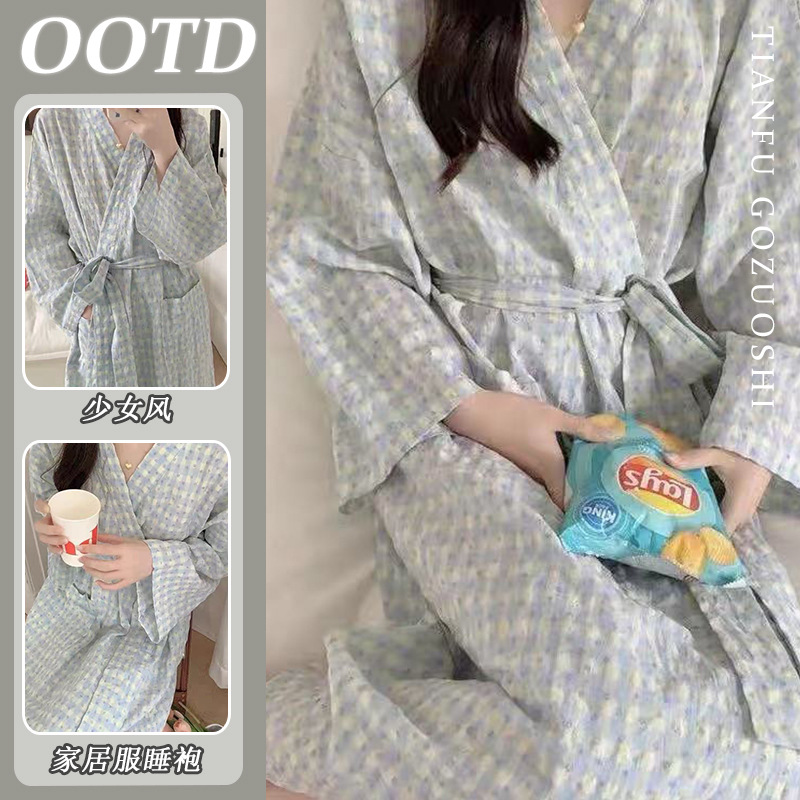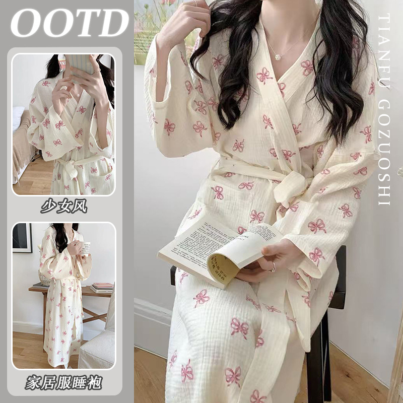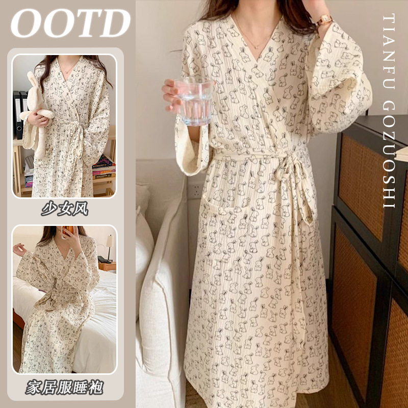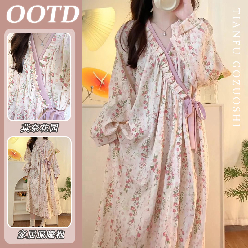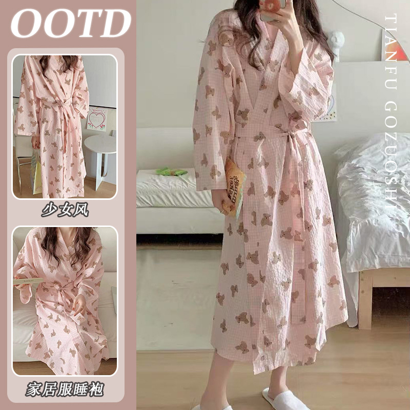 한국 여성의 새로운 잠옷 여성 봄, 가을 꽃 목욕 가운 긴 기모노 느슨한 잠옷 여름 가정복스토어 가기