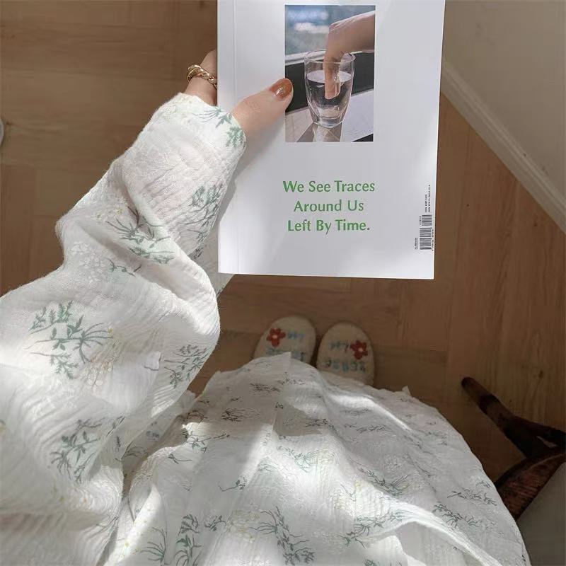 한국 여성의 새로운 잠옷 여성 봄, 가을 꽃 목욕 가운 긴 기모노 느슨한 잠옷 여름 가정복