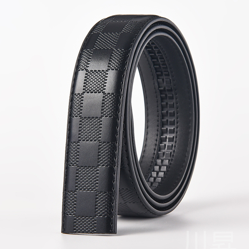 남성용 벨트 제조업체 자동 버클 벨트 맞춤형 검은 격자 무늬 2층 소가죽 남성용 벨트 버클 없음 정품 가죽 바지 벨트