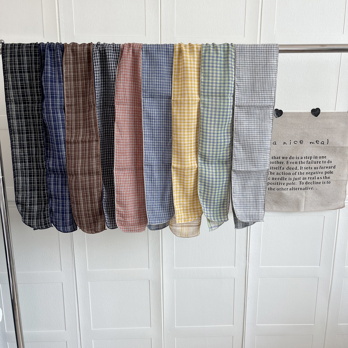 한국 복고풍 순면 양면 격자 무늬 실크 스카프 봄과 가을 얇은 다용도 넥 데코레이션 스카프 틈새 디자인 리본스토어 가기