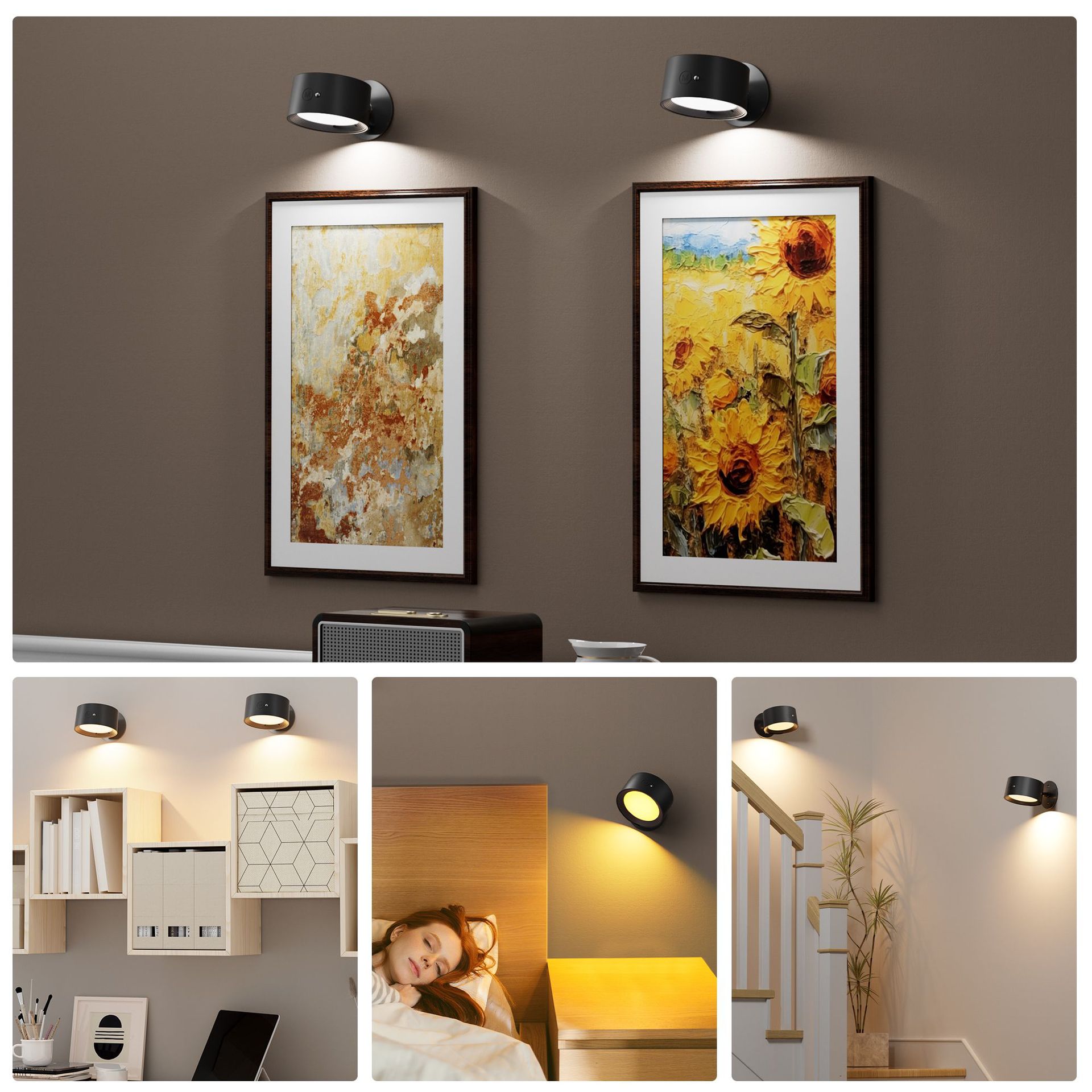 LED 벽걸이 조명 2개(리모컨 벽 조명 포함) 3가지 색상 온도 및 조광 가능 자기 360° 회전 무선 조명스토어 가기