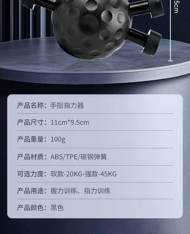 材质ABS+PP+TPE+碳钢弹簧,产品尺寸12*10*7cm,产品重量175克,彩盒包装尺寸13*10.5*7.5cm,