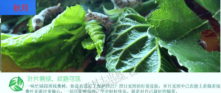 • 작은 누에는 100g의 매우 어린 잎을 먹습니다.