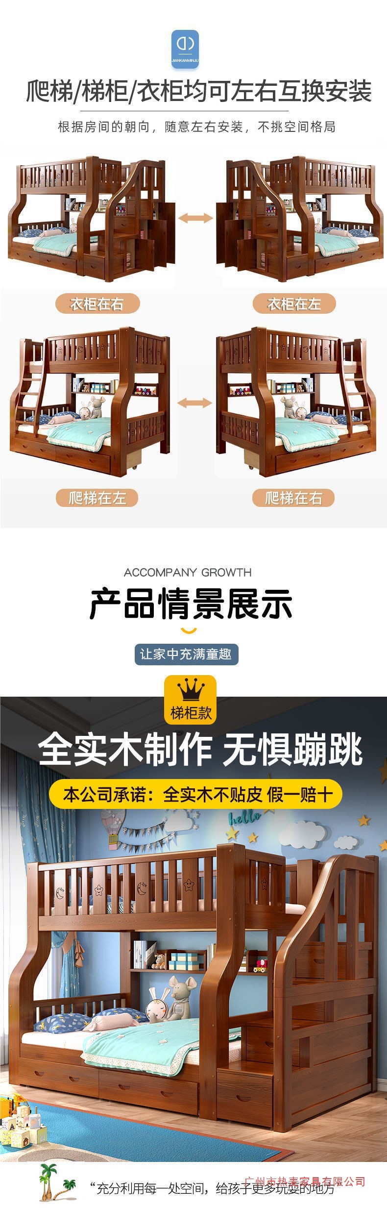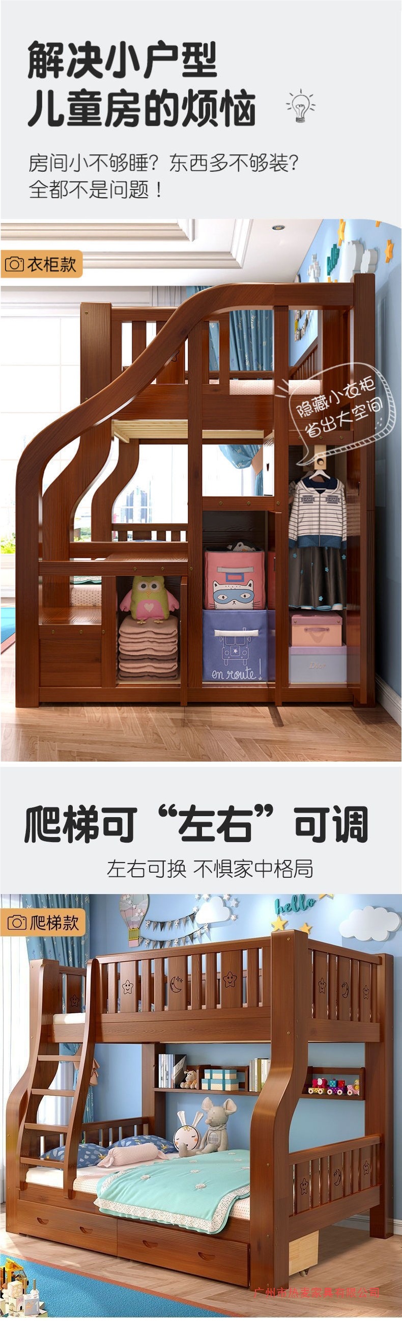 원목 이층침대, 두꺼운 이층침대, 높낮이 침대, 다기능 가정용 성인용 이층침대, 어린이용 침대