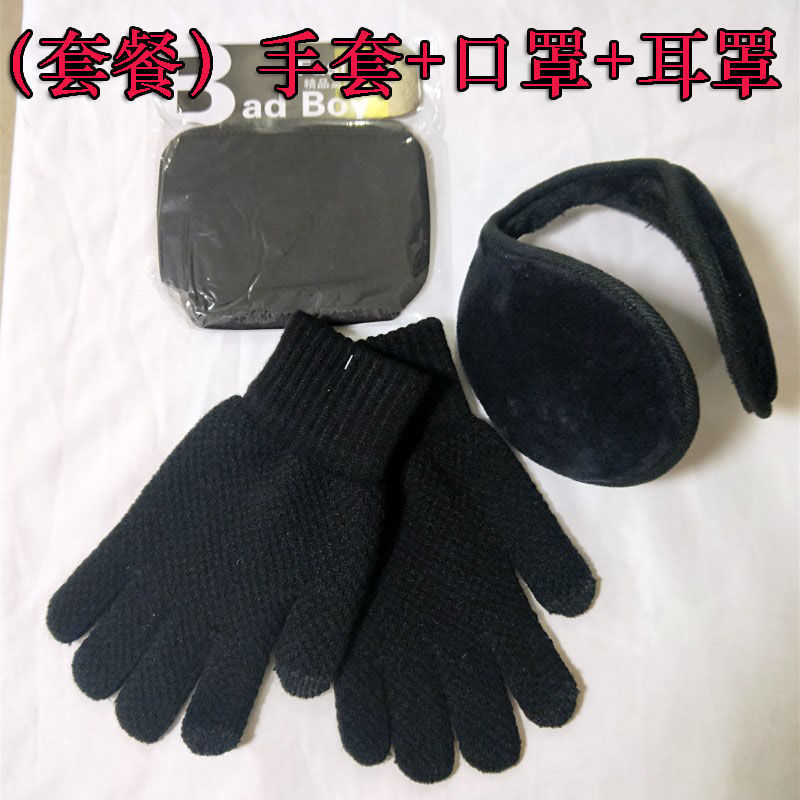 • (패키지) 검은색 두꺼운 장갑, 마스크, 귀마개