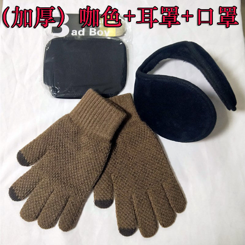 • (패키지) 갈색 두꺼운 장갑, 귀마개, 마스크