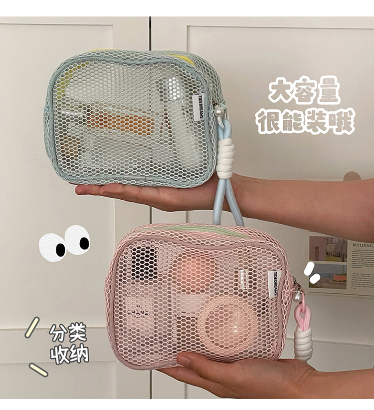 도파민 메쉬 화장품 가방 여성용 대용량 휴대용 세면 용품 가방 화장품 보관 가방 다기능 핸드백스토어 가기