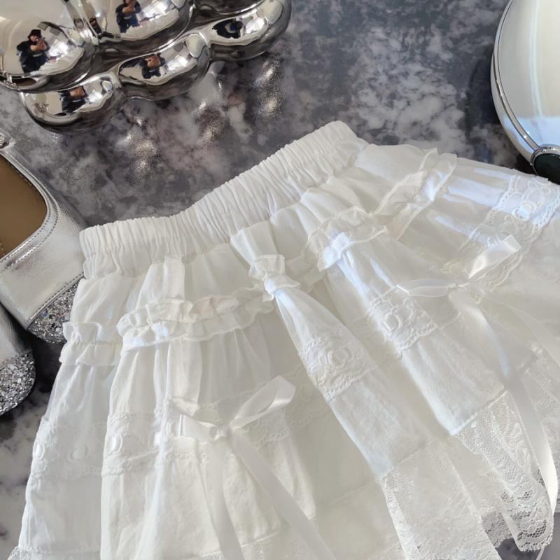여자 화이트 케이크 스커트 봄과 여름 2025 새로운 여자 슈퍼 요정 퍼프 스커트 어린이 레이스 스커트 유행