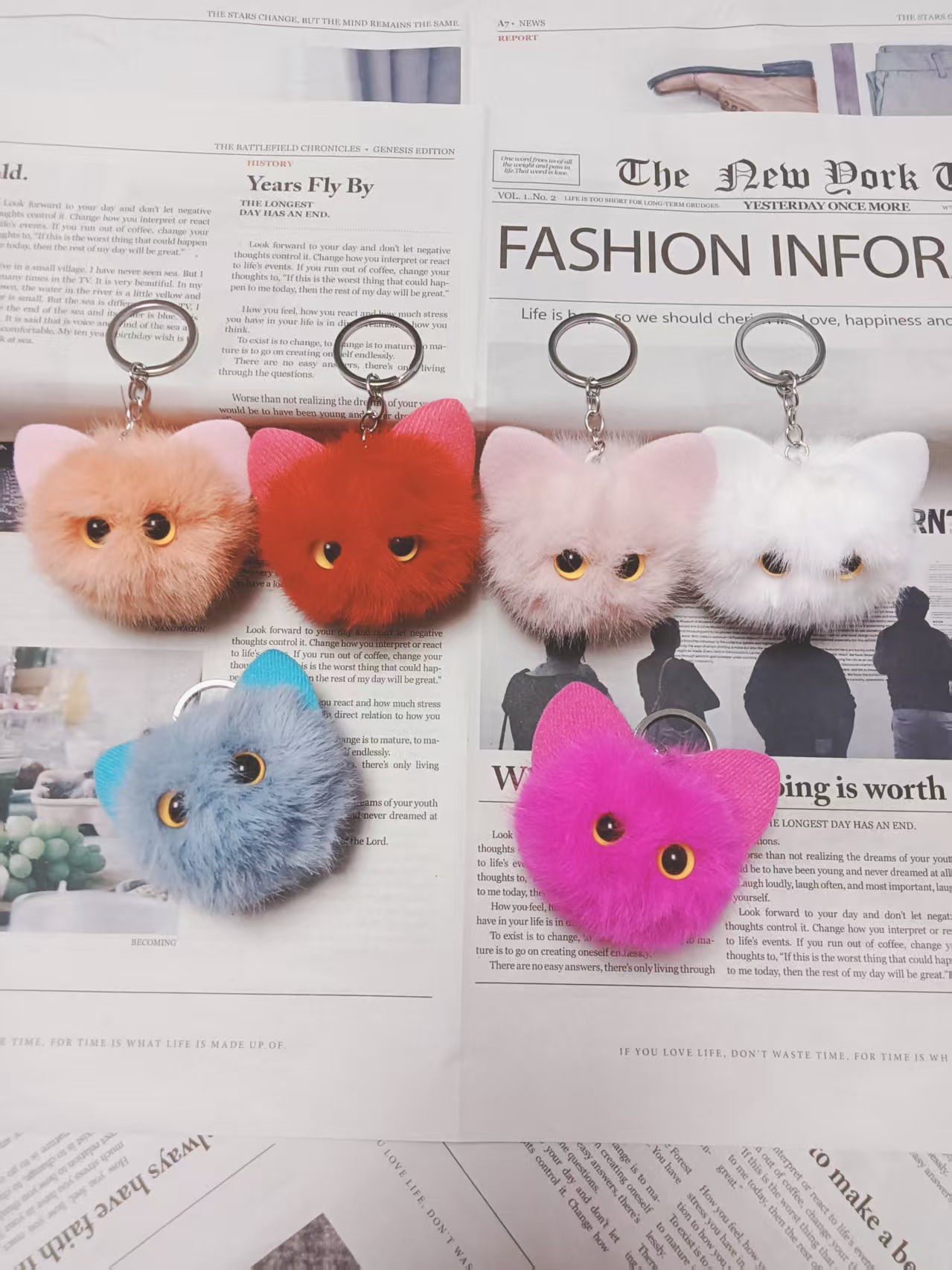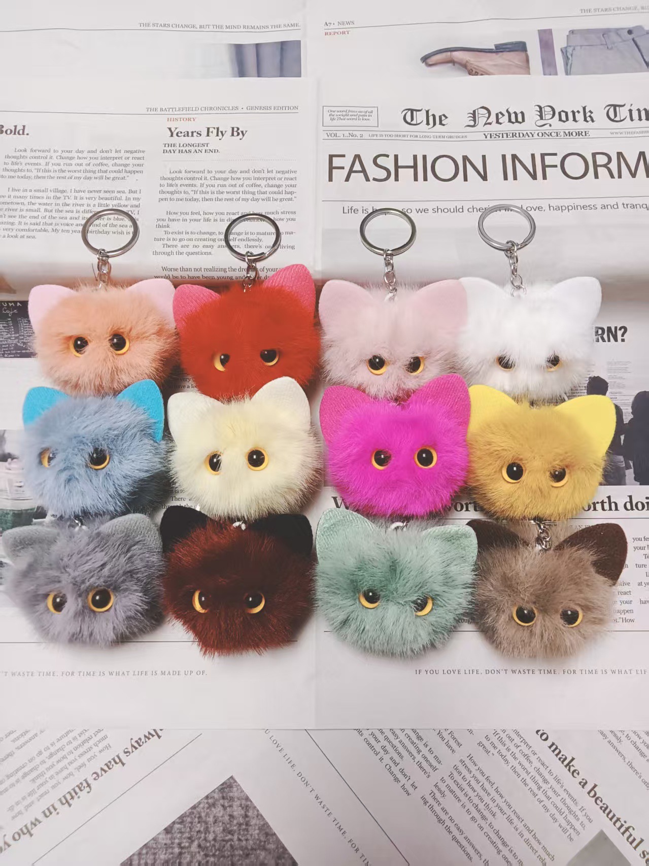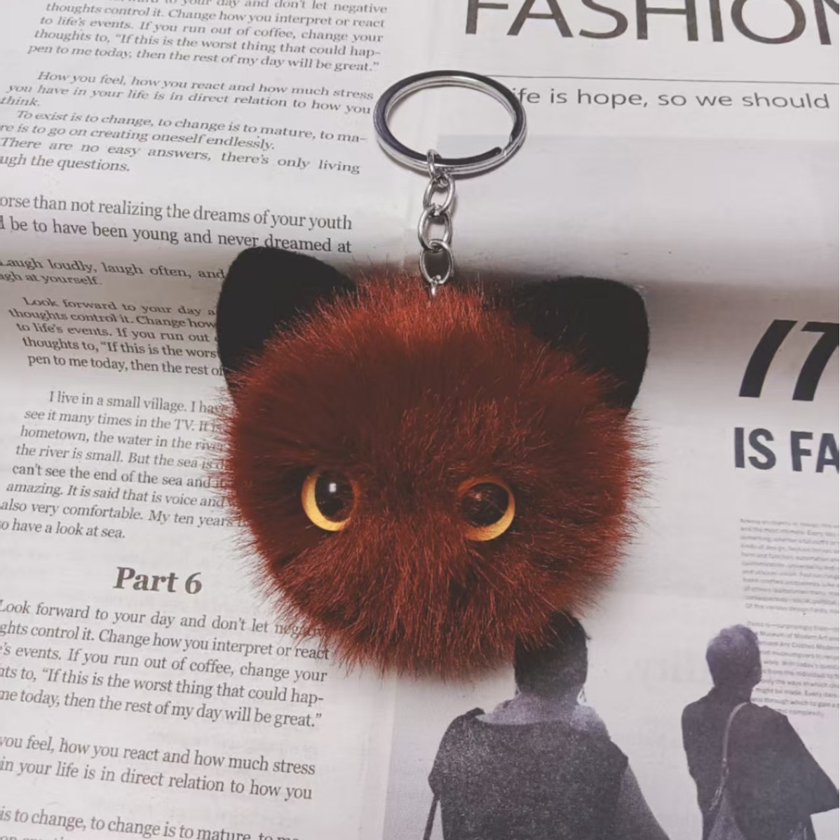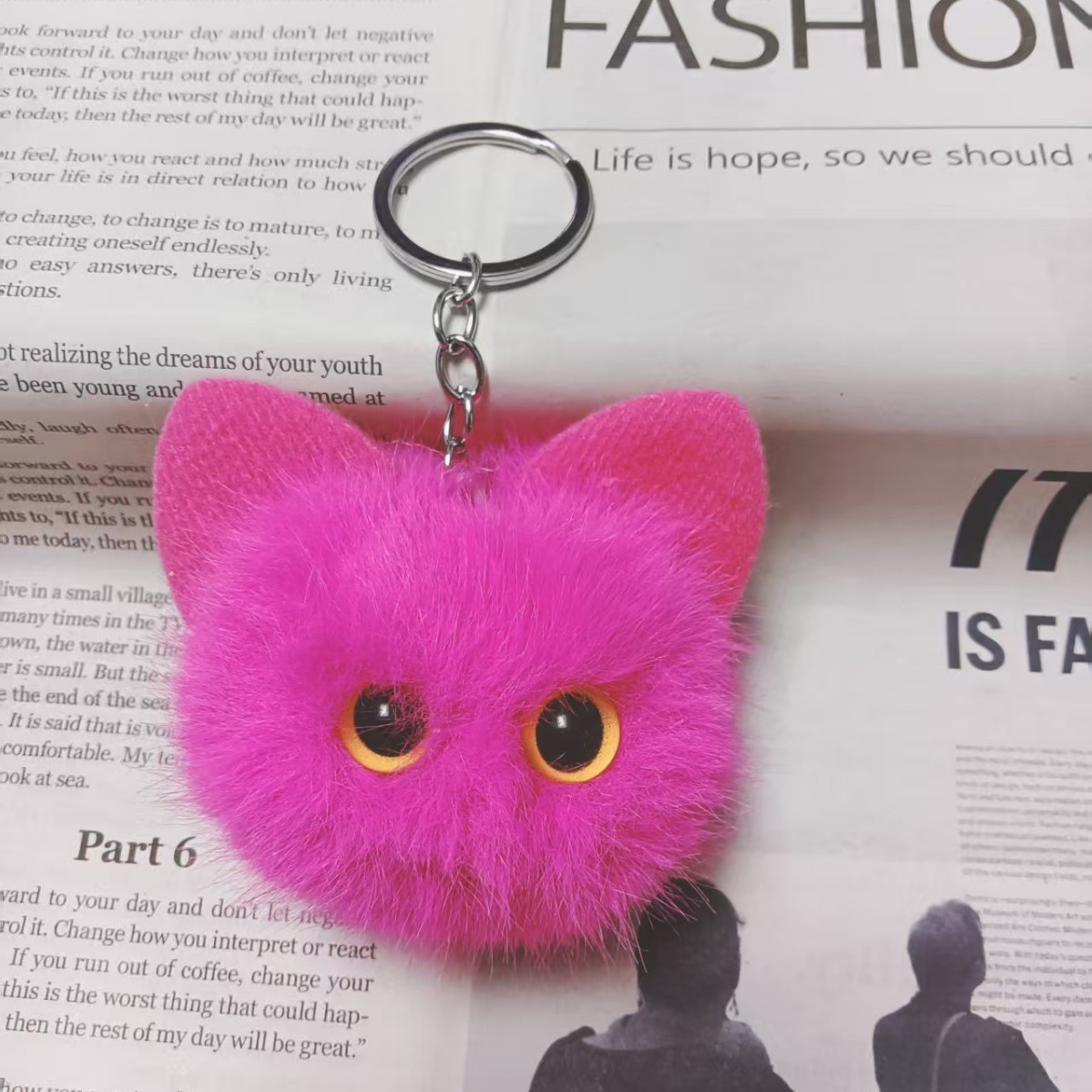 귀여운 플러시 키체인 모조 밍크털 고양이 머리 키홀더 창의적인 만화 자동차 가방 키체인 선물 도매