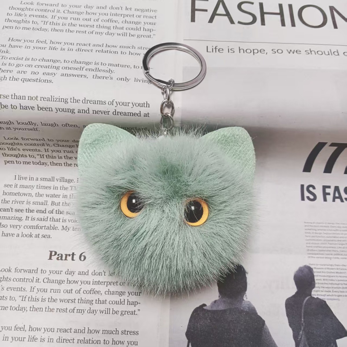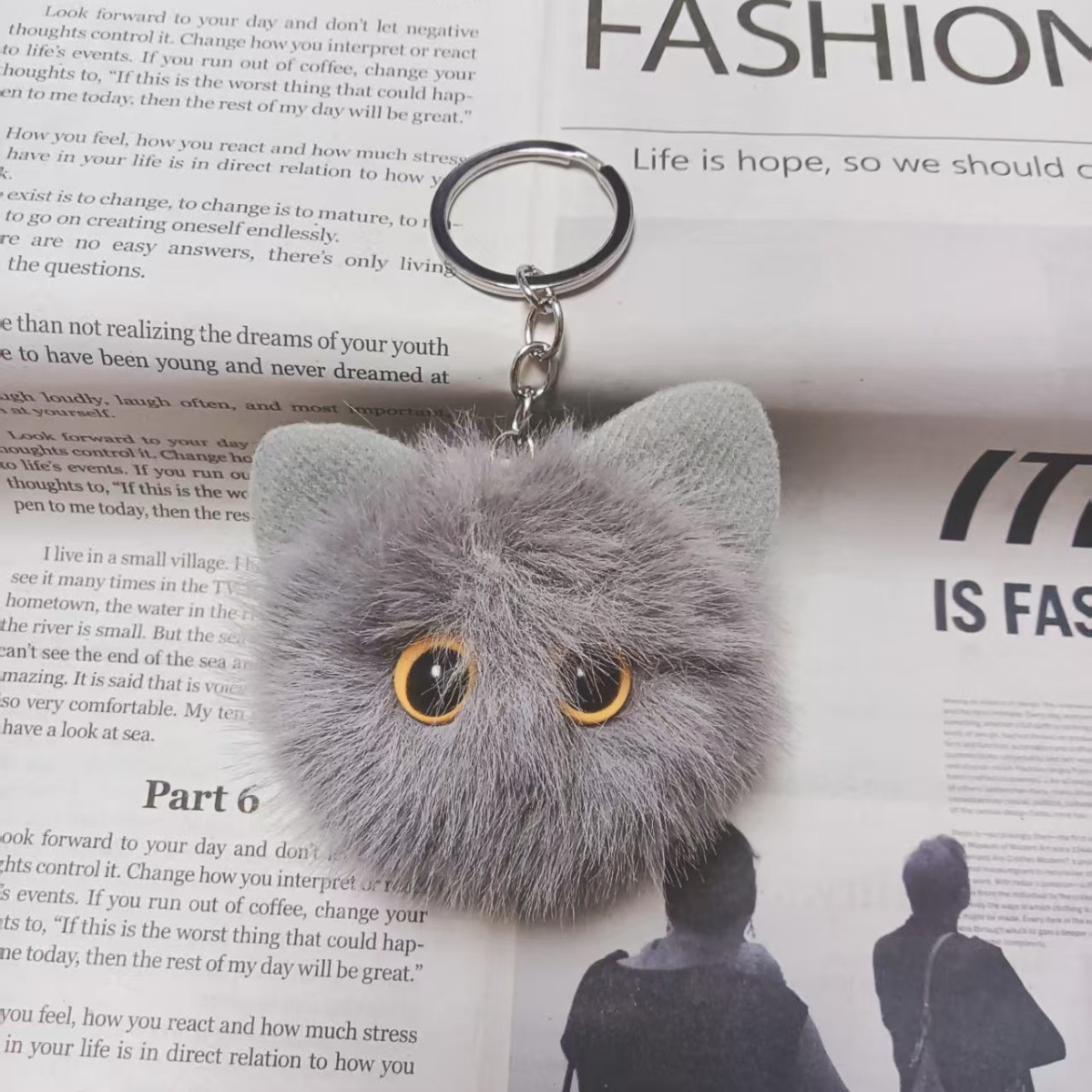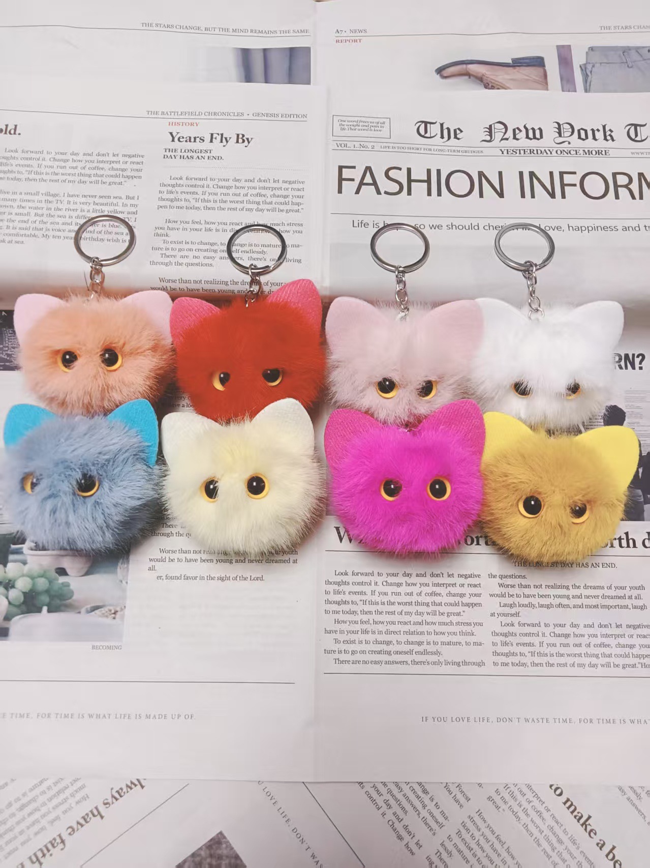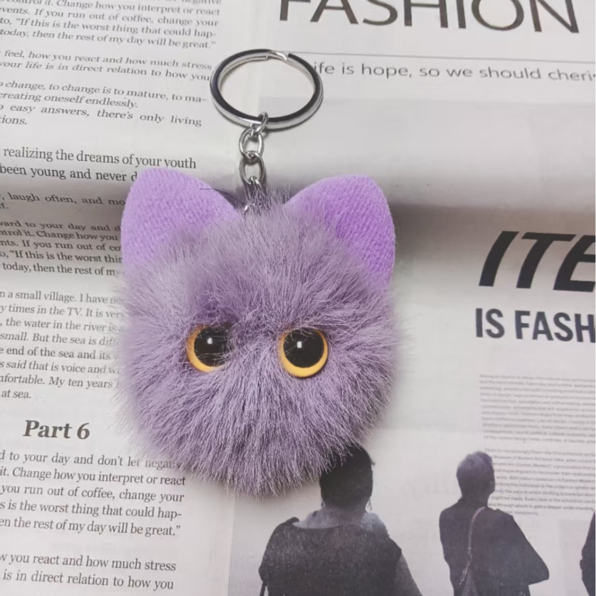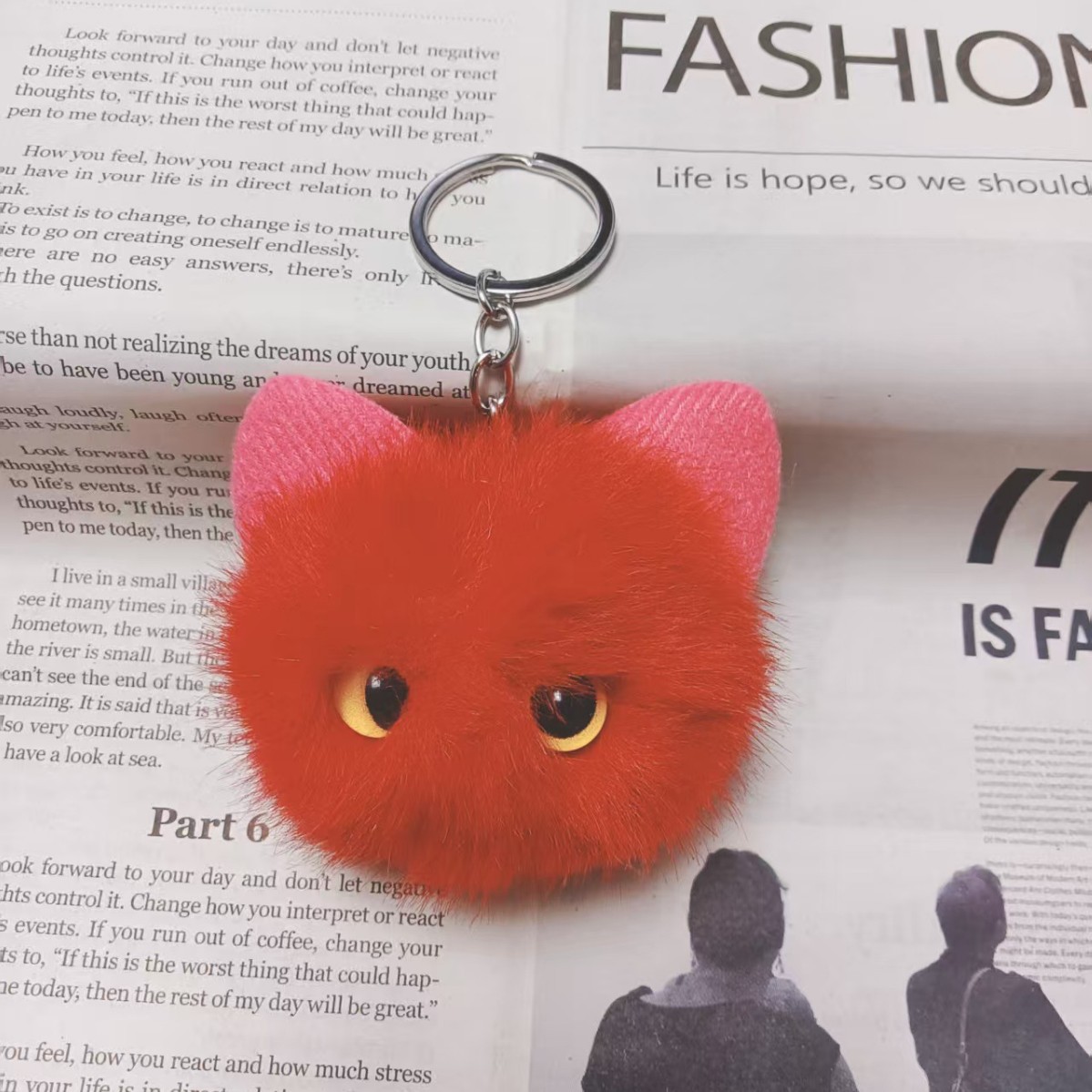 귀여운 플러시 키체인 모조 밍크털 고양이 머리 키홀더 창의적인 만화 자동차 가방 키체인 선물 도매