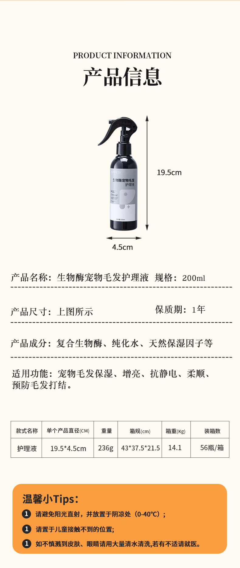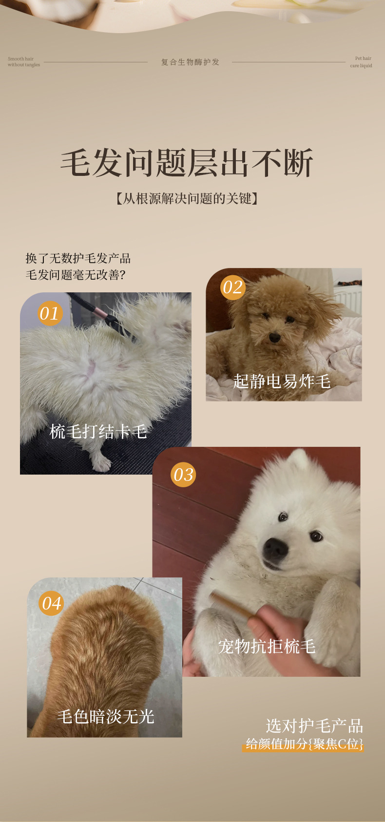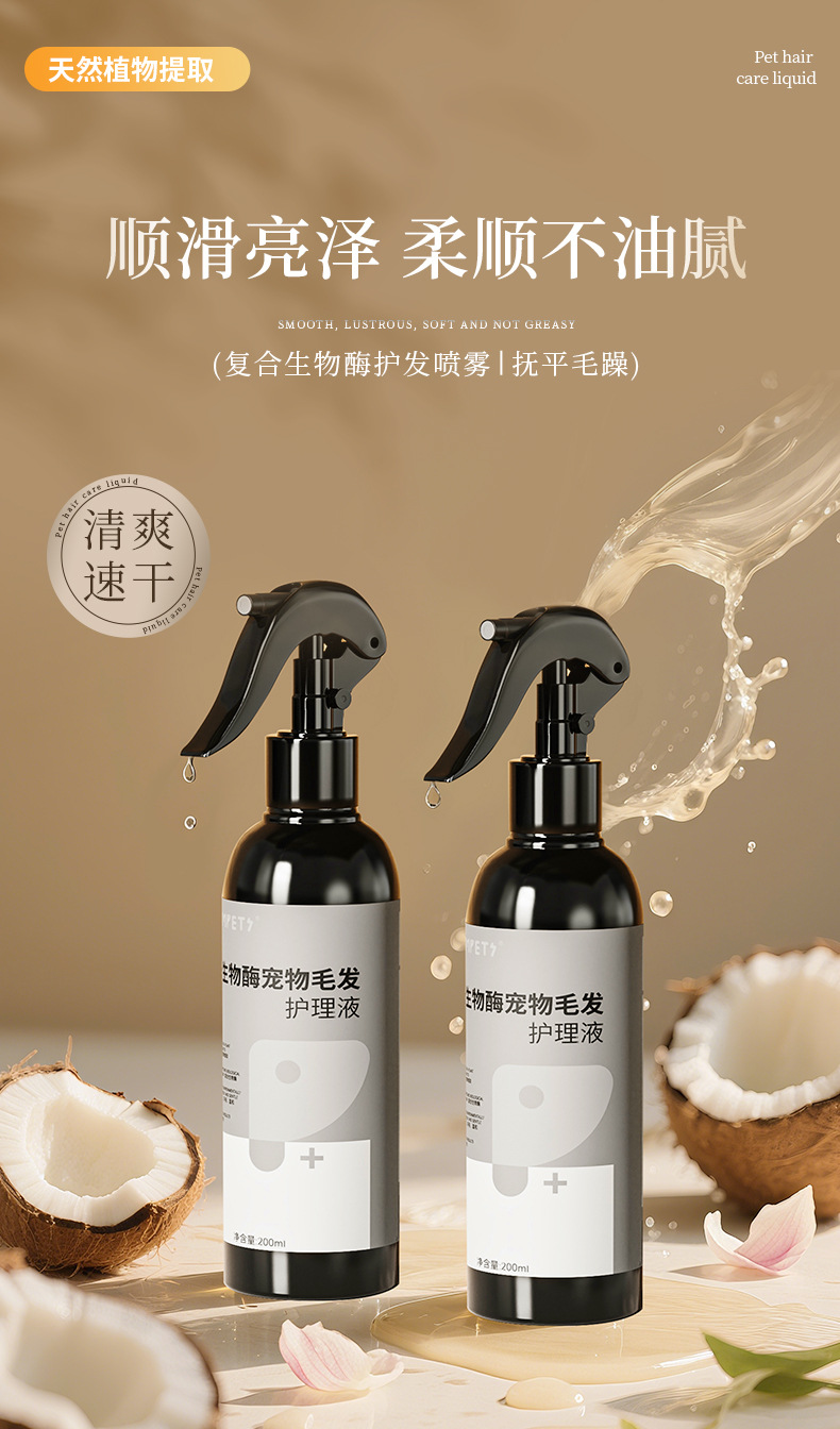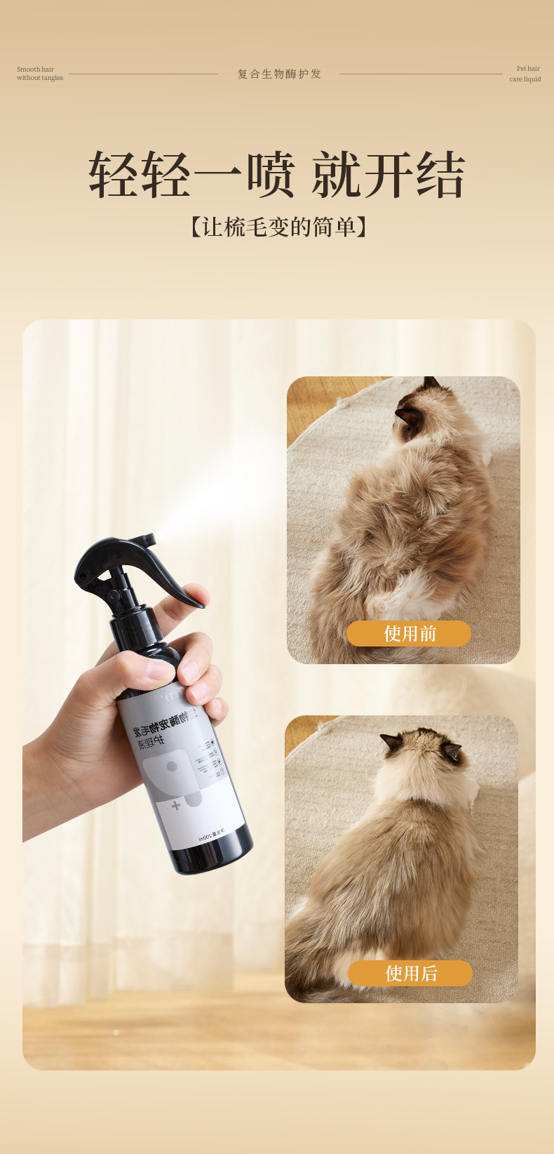 개와 고양이를 위한 애완동물 헤어 케어 스프레이, 매듭 풀기, 모발 정돈, 정전기 방지, 생물학적 효소 케어 솔루션, 수분 공급 및 보습