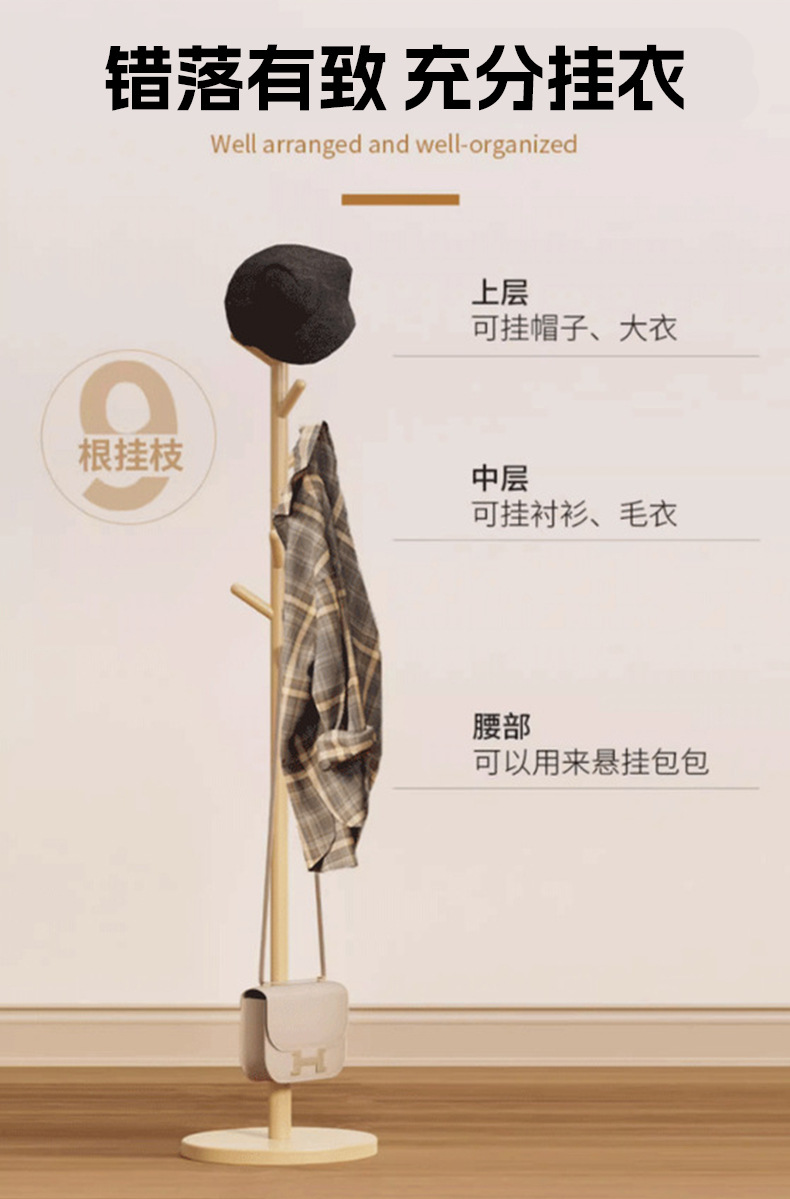 너도밤나무 옷걸이 침실 옷걸이 거실 옷걸이 가정용 간편 설치 스탠드형 옷걸이