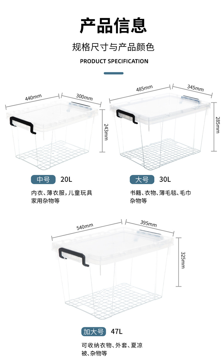 Xitianlong 투명 보관 상자 가정용 플라스틱 뚜껑 정리 상자 초대형 의류 장난감 보관 상자 보관 상자스토어 가기