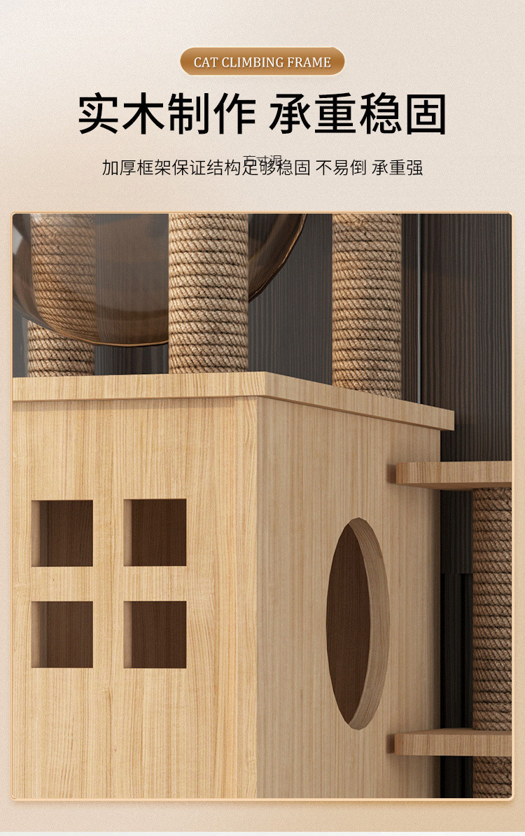 고양이 빌라 고양이 클라이밍 프레임 단단한 나무 통합 고양이 스크래치 컬럼 3층 고양이 둥지 고양이 성 처리 국경 간 공장 대외 무역 도매