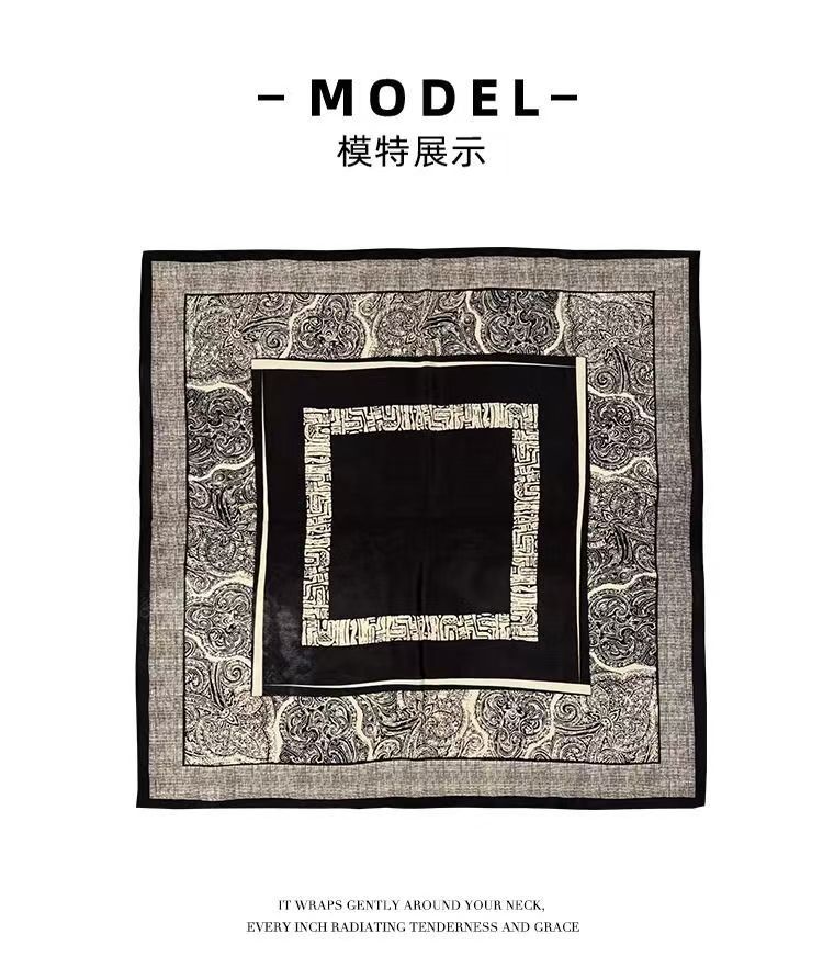 • [흑백 바로크 약 65*65cm] 크레이프드신 스퀘어 스카프