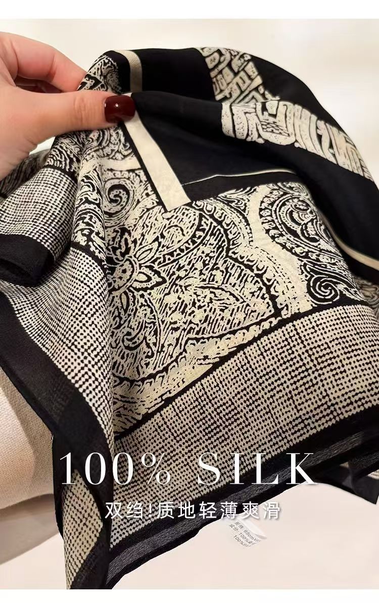 100% 뽕나무 실크 흑백 바로크 65 실크 크레페 드 신 스카프 여성 봄, 여름, 가을 하이 엔드 복고풍 실크 스카프스토어 가기