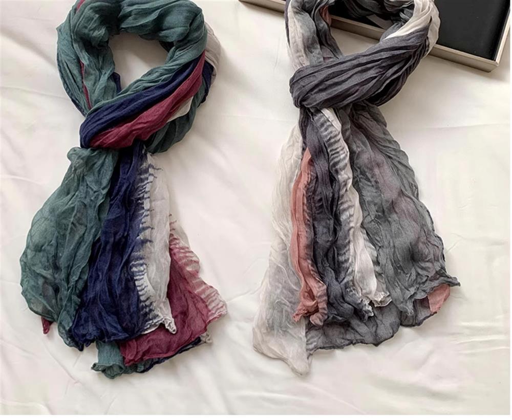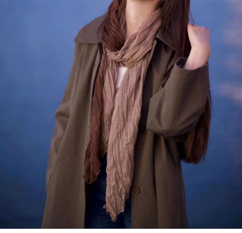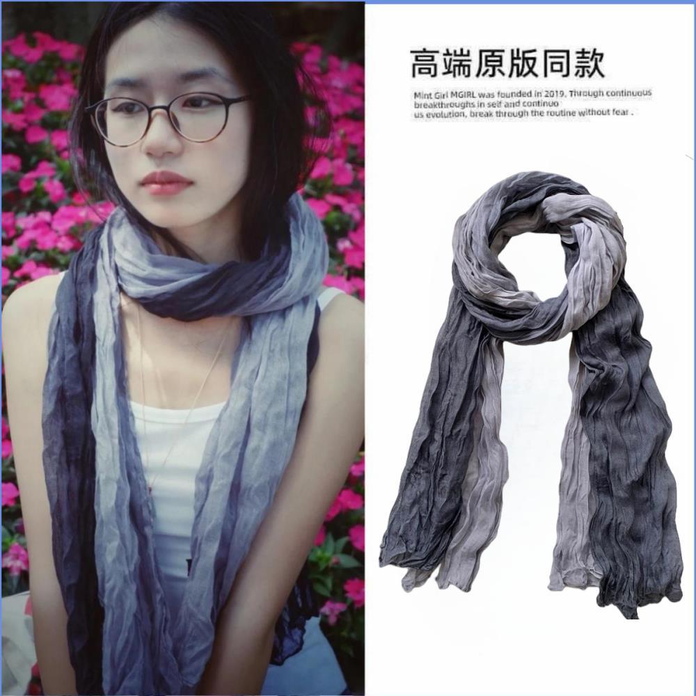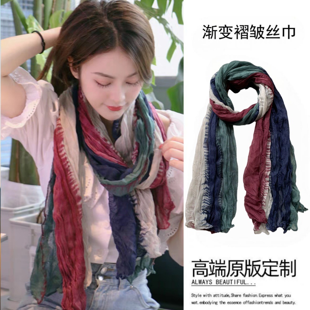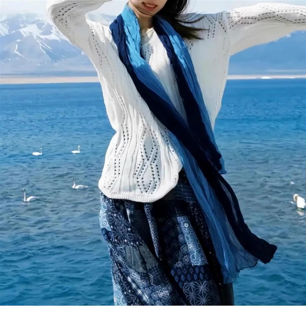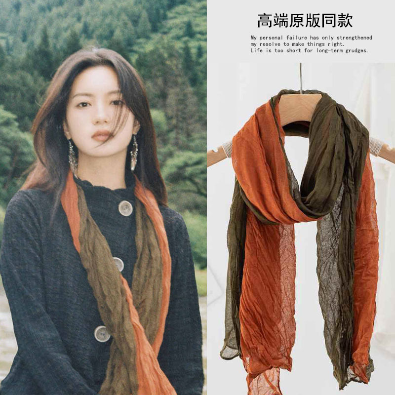 웨이스트랜드 스타일 북서부 간쑤성 둔황 사막 여행복 얇은 주름 장식 바오터우 자외선 차단 숄 스카프 여성용 거즈 스카프