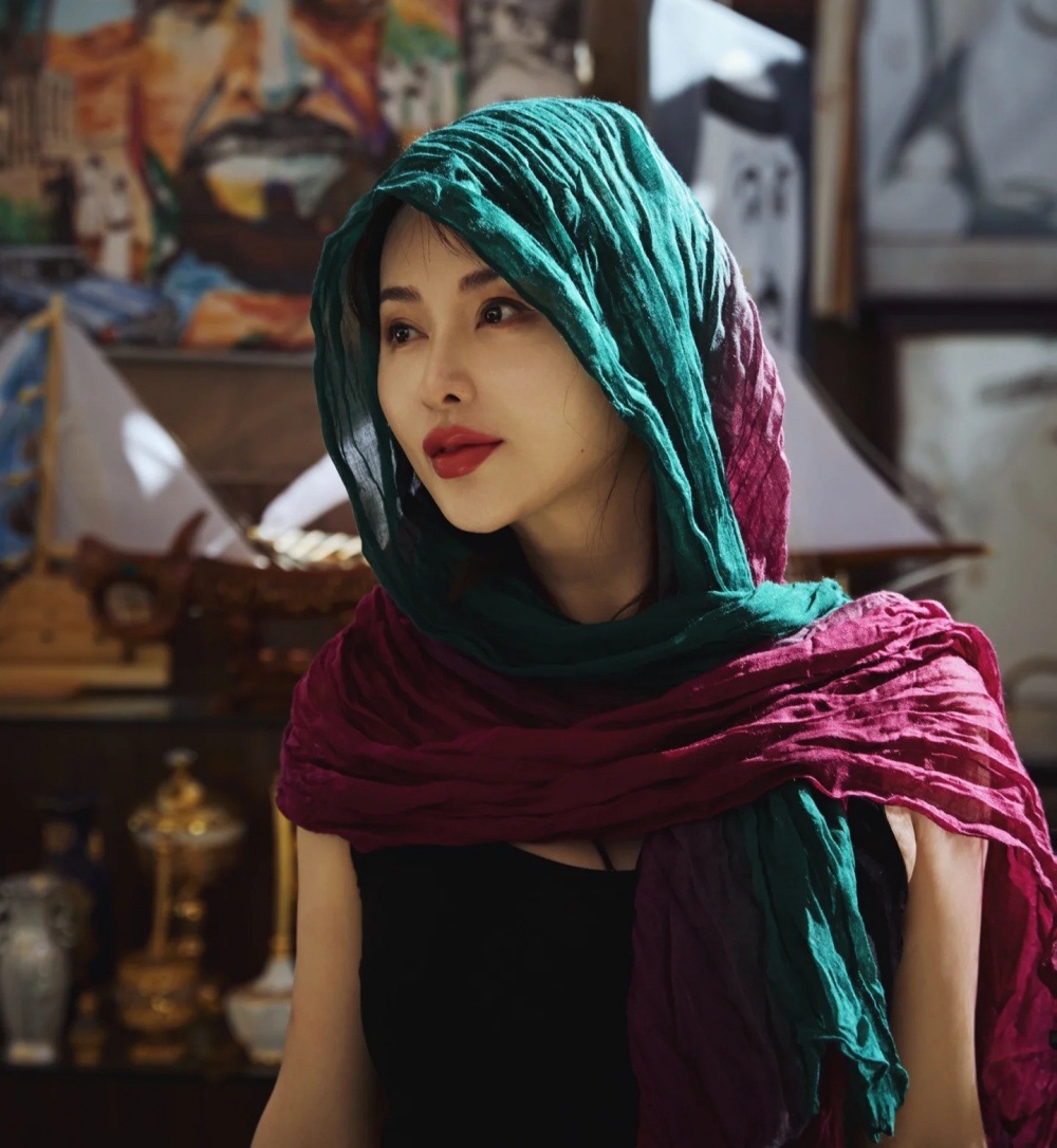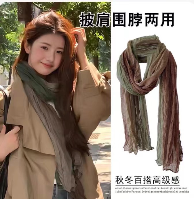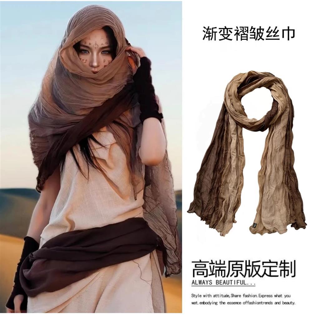 웨이스트랜드 스타일 북서부 간쑤성 둔황 사막 여행복 얇은 주름 장식 바오터우 자외선 차단 숄 스카프 여성용 거즈 스카프스토어 가기
