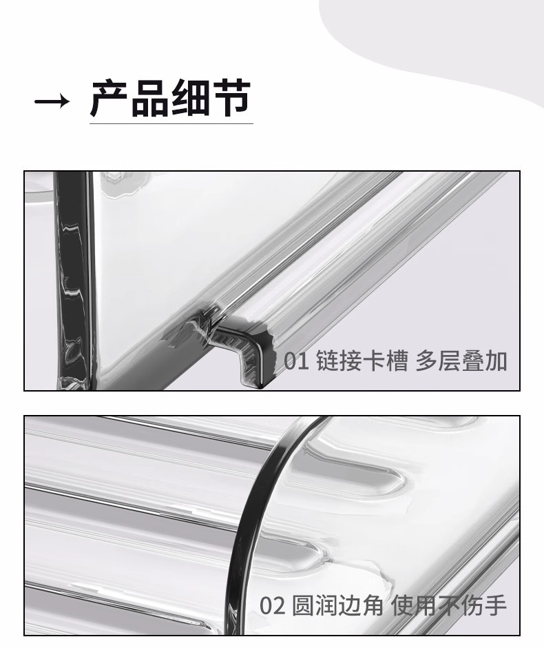 • [두꺼운 PET는 하중 지지력이 강하고 안정적이며 미끄러지기 쉽지 않습니다.] 3단 전체 랙