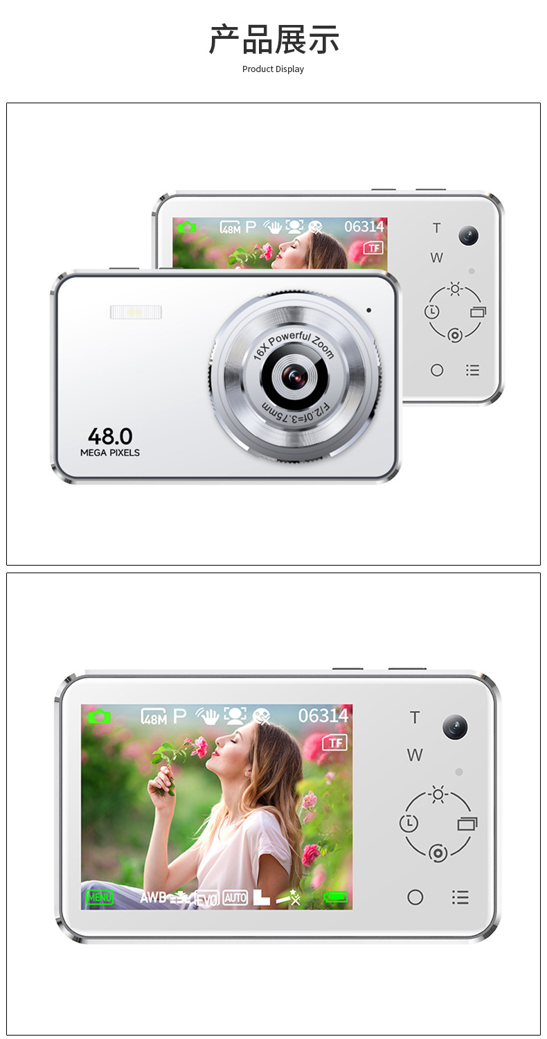 전면 및 후면 듀얼 카메라 4800W/6400W 픽셀 16배 줌 AF 자동 초점 소형 및 경량 디지털 카메라스토어 가기