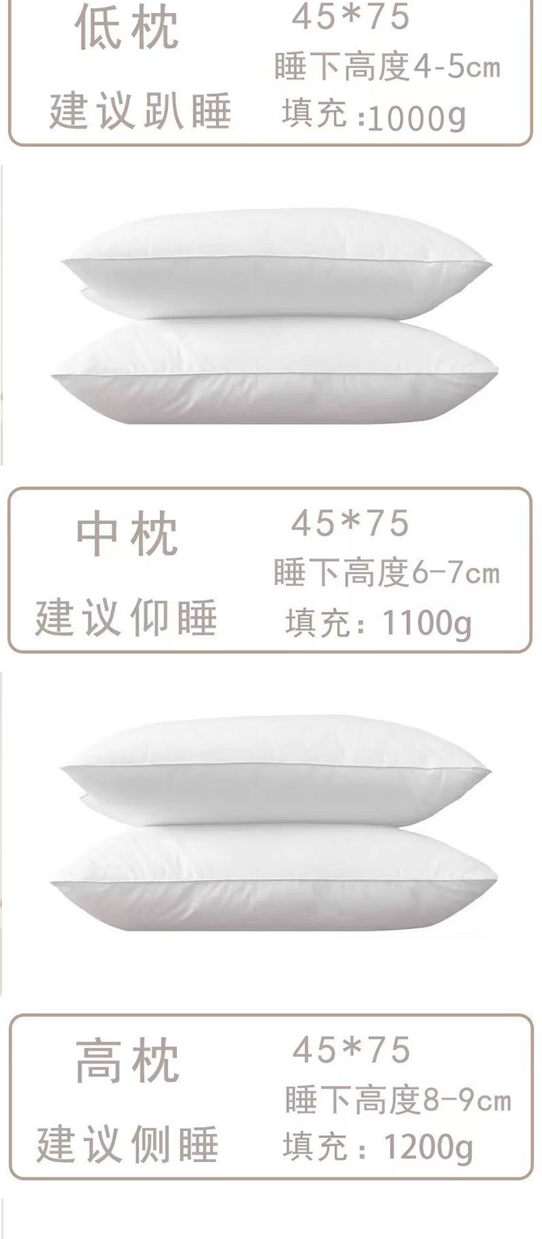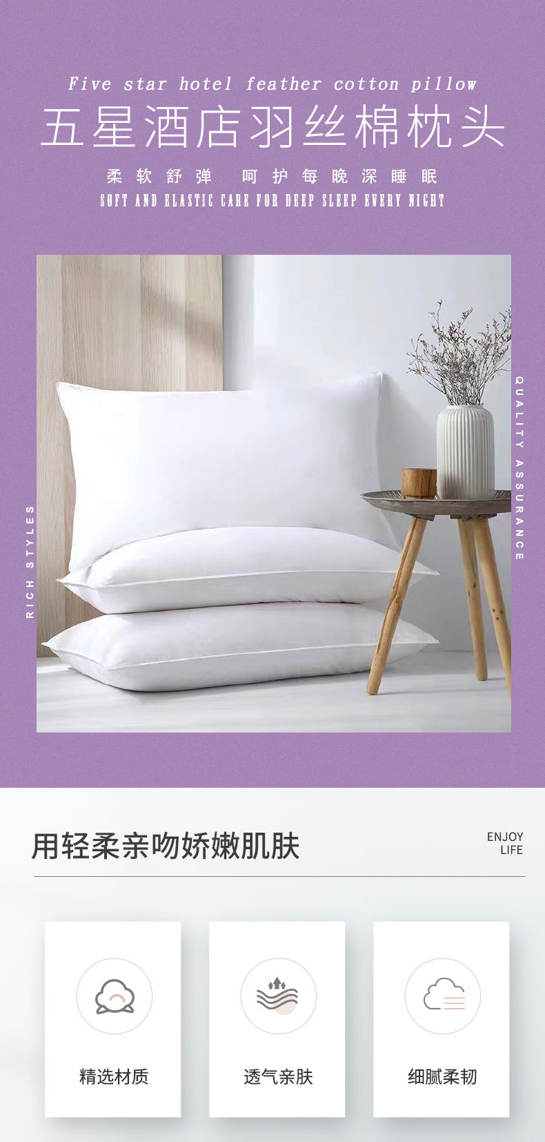 5성급 호텔 깃털솜 베개, 순면 베개심, 부드럽고 편안한 목 보호 수면 베개, 제조업체 도매, 품질 보증